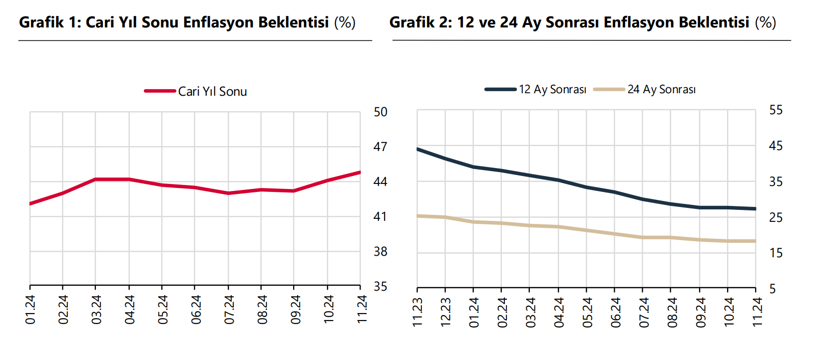 Bakan Şimşek, enflasyon beklentisinin 12 ay sonrası için iyileşmeye devam ettiğini belirterek, "Fiyat istikrarına giden yol sabır ve kararlılık gerektiriyor. Dezenflasyonu sağlamaya yönelik programımızı titizlikle uygulamaya devam ediyoruz." ifadelerini kullandı. Şimşek, sosyal medya hesabından yaptığı paylaşımda, Türkiye Cumhuriyet Merkez Bankası (TCMB) tarafından açıklanan kasım ayına ilişkin Piyasa Katılımcıları Anketi'ni değerlendirdi. Ekimde yüzde 48,6 olan yıllık enflasyonun söz konusu ankete göre, 12 ay sonra yüzde 27,2'ye gerilemesinin beklendiğini vurgulayan Şimşek, şunları kaydetti: "Enflasyon beklentisi 12 ay sonrası için iyileşmeye devam ederken diğer vadelerde sınırlı artış gerçekleşti. Beklentilerdeki artışta son 2 aylık enflasyon verisi etkili oldu. Uzun süredir önemli ölçüde iyileşse de beklentilerin belirli bir seviyenin altına inmesi zaman alıyor. Fiyat istikrarına giden yol sabır ve kararlılık gerektiriyor. Dezenflasyonu sağlamaya yönelik programımızı titizlikle uygulamaya devam ediyoruz." Kaynak: TCMB - Piyasa Katılımcıları Anketi