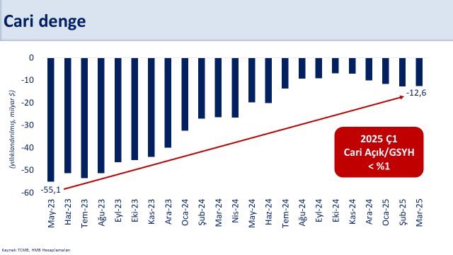 Hazine ve Maliye Bakanı Mehmet Şimşek, martta yıllık 12,6 milyar dolar olarak gerçekleşen cari açığın ilk çeyrekte milli gelire oranla yüzde 1’in altında kalmasını beklediklerini söyledi. Bakan Şimşek, ödemeler dengesinde gerçekleşen cari açığı değerlendirdi. Şimşek'in konuya ilişkin paylaşımı şöyle oldu: "Martta yıllık 12,6 milyar dolar gerçekleşen cari açığın ilk çeyrekte milli gelire oranla yüzde 1’in altında kalmasını bekliyoruz. Küresel belirsizlikler nedeniyle artan fiyatların da etkisiyle altın ithalatı yüksek seyrediyor. Altın hariç cari işlemler dengesi yıllık 1,6 milyar dolar fazla verdi. İhracatımızın dirençli yapısı, enerji fiyatlarındaki olumlu seyir ve turizm gelirlerinin katkısıyla, cari açığın yıl sonunda OVP tahminimizin oldukça altında gerçekleşmesini öngörüyoruz. Cari açığın sürdürülebilir seviyelerde kalması, brüt dış finansman ihtiyacının milli gelire oranındaki düşüş eğiliminin süreceğine işaret ediyor. Azalan dış finansman ihtiyacı ve yeniden başlayan rezerv birikimi makro finansal istikrarı güçlendirirken ekonomimizin dayanıklılığını artıyor." Kaynak: Mehmet Şimşek