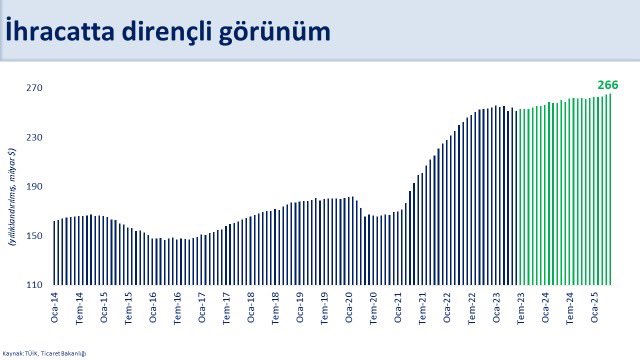 İhracatta mayıs ayında yaşanan artışa dikkati çeken Hazine ve Maliye Bakanı Mehmet Şimşek, "Hedefimiz cari dengede sağladığımız iyileşmeyi, yapısal dönüşüm adımları ve katma değerli üretime yönelik desteklerle kalıcı hale getirmektir." dedi. Şimşek, sosyal medya hesabından yaptığı paylaşımda, mayıs ayı dış ticaret verilerini değerlendirdi. Zorlu küresel koşullar, artan rekabet ve takvim etkisine rağmen mayısta ihracatın yıllık yüzde 2,7 arttığını belirten Şimşek, ithalat artışının yüzde 2,1 olarak gerçekleştiğini bildirdi. Şimşek, yıllıklandırılmış dış ticaret açığının da yatay seyrettiğine işaret ederek, "Hedefimiz cari dengede sağladığımız iyileşmeyi, yapısal dönüşüm adımları ve katma değerli üretime yönelik desteklerle kalıcı hale getirmektir." değerlendirmesinde bulundu. Kaynak: Mehmet Şimşek - X