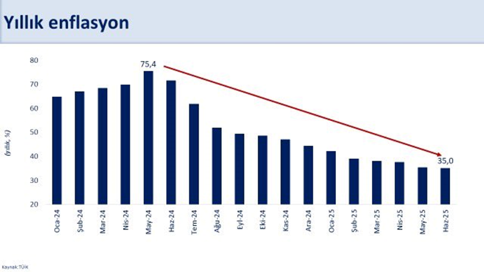 Enflasyonun artan petrol fiyatlarına rağmen düşüşünü sürdürdüğünü belirten Hazine ve Maliye Bakanı Mehmet Şimşek, "Vatandaşlarımız müsterih olsun; gıda ve dayanıklı tüketim ürünlerinden eğitime, ulaştırmadan diğer birçok sektöre kadar enflasyonda belirgin bir yavaşlama başladı ve bu eğilim devam edecek.” dedi. Hazine ve Maliye Bakanı Mehmet Şimşek, haziran ayı enflasyon rakamlarını değerlendirdi. Bakan Şimşek, sosyal medya hesabı üzerinden yaptığı değerlendirmede şunları kaydetti: “Haziranda aylık enflasyon, jeopolitik gerginlikler nedeniyle artan petrol fiyatlarına rağmen yüzde 1,37 gerçekleşti. Dezenflasyonun devam ettiği haziranda yıllık enflasyon yüzde 35’e geriledi. Ataletin yüksek olduğu hizmetlerde yıllık enflasyon üç yılın ardından yüzde 50’ye indi. Dezenflasyon sürecindeki kararlılığımız hem gerçekleşme verilerinde hem de beklentilerde belirginleşti. Son dönemde gerileyen emtia fiyatları, finansal piyasalarda azalan oynaklık, iyileşen enflasyon beklentileri ve destekleyici talep koşulları yılın ikinci yarısında enflasyondaki düşüşün sürmesine katkı sağlayacak. Vatandaşlarımız müsterih olsun; gıda ve dayanıklı tüketim ürünlerinden eğitime, ulaştırmadan diğer birçok sektöre kadar enflasyonda belirgin bir yavaşlama başladı ve bu eğilim devam edecek.” [news_id:777441]