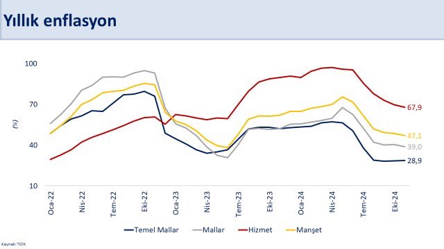 Hazine ve Maliye Bakanı Şimşek, enflasyon rakamlarına ilişkin yaptığı değerlendirmede, "Hizmet enflasyonundaki gerileme ve iyileşen enflasyon beklentileri katılıkları azaltmada önemli mesafe katettiğimizi gösteriyor" dedi. Hazine ve Maliye Bakanı Mehmet Şimşek, kasım ayı enflasyon rakamlarına ilişkin sosyal medya hesabından açıklamada bulundu. Bakan Şimşek’in konuyla ilgili paylaşımı şöyle oldu: “Kasımda yıllık enflasyon yüzde 47,1 gerçekleşti, mayısa göre gerileme 28,4 puan oldu. Son iki aydır yüksek seyreden gıda enflasyonuna rağmen yıllık mal enflasyonu yüzde 40’ın altına geriledi. Hizmet enflasyonu aylık yüzde 1,6 ile 2021 yılı Kasım ayından bu yana en düşük seviyesinde gerçekleşti ve yıllık hizmet enflasyonundaki düşüş eğilimi devam etti. Hizmet enflasyonundaki gerileme ve iyileşen enflasyon beklentileri katılıkları azaltmada önemli mesafe katettiğimizi gösteriyor.” Kaynak: Mehmet Şimşek - X [news_id:754728]
