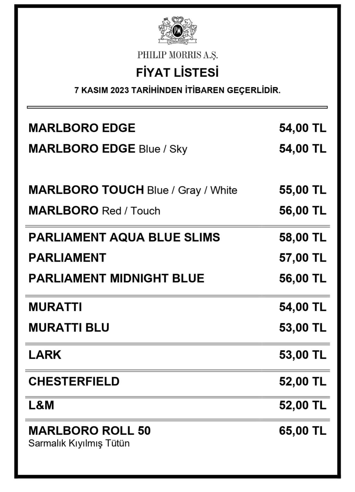 JTI ve BAT gruplarının ardından bir sigara grubuna daha zam geldi. Buna göre Philip Morris'in en ucuz sigarası 52 lira, en pahalı sigarası ise 58 liraya yükseldi. Türkiye Tekel Bayiler Başkanı Özgür Aybaş, sosyal medya hesabından yaptığı paylaşımda bir sigara grubuna daha zam geldiğini duyurdu. Aybaş'ın paylaşımına göre, son zamla birlikte Philip Morris grubunda en ucuz sigaranın fiyatı 52 lira, en pahalı sigara ise 58 lira oldu. Buna göre Philip Morris grubuna ait sigaralarda 5 TL'lik zam gerçekleştirildi. Zamlı fiyatların ise bugün itibarıyla geçerli olacağı belirtildi. BAT grubunun sattığı en ucuz sigara ise son gelen zamla birlikte 48 TL olmuştu. BAT grubuna ait sigaralardan en pahalısı ise 60 TL'ye çıkmıştı. [news_id:713559] Sigaranın başlıca zararları nelerdir? Dünya Sağlık Örgütü’nün verilerine göre küresel çapta yaklaşık 1,2 milyar kişinin sigara kullandığı tahmin edilirken; sigara içen kişiler, kendilerine zarar verdikleri gibi çevrelerinde bulunan kişilerede zarar vermektedir. Bu duruma ise pasif içicilik denilmektedir. Peki sigaranın başlıca zararları nelerdir? Öncelikle sigaranın en büyük zararını %10-15 kilo eksikliği ve zeka geriliği ile anne karnındaki bebekler görmektedir. Tütün içinde bulunan Karbonmonoksit, Nikotin, Katran gibi zararlı maddeler, akciğer kanseri başta olmak üzere solunum sistemi hastalıklarından olan bronşit ve amfizeme gibi hastalıklara neden olmaktadır. Öte yandan sigarada bulunan Karbonmonoksitin kandaki oksijeni yok etmesiyle damarlarda kolestrol depolanmakta ve bunun neticesinde kalp krizi riski artmaktadır. Sigara içmek ayrıca yemek borusu ile midede ülser ve kanama riskini artırmakta, pankreas kanseri riskini de kuvvetlendirmektedir. Ayrıca, sigara içen erkeklerin içmeyenlere oranla ellerinde ve parmaklarında daha sık sararmalar görülmektedir.