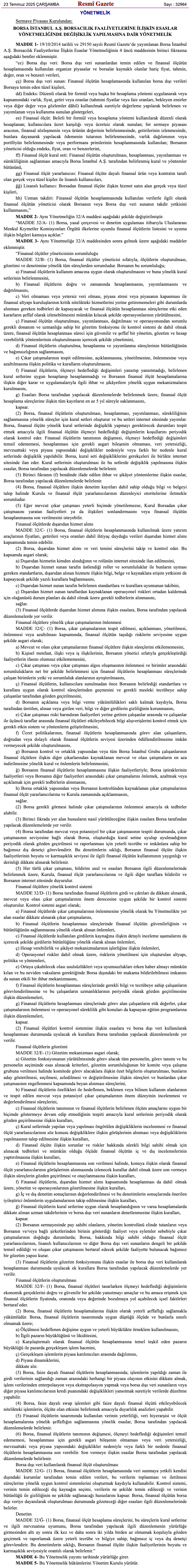 Sermaye Piyasası Kurulu (SPK), yayımladığı yeni düzenlemeyle Borsa İstanbul’un finansal ölçüt ve endeks üretim süreçlerine dair sorumluluğunu genişletti. Artık endekslerin nasıl hesaplandığı, hangi verilerin kullanıldığı ve çıkar çatışmalarının nasıl yönetileceği net kurallara bağlandı. Yeni yönetmeliğe göre Borsa İstanbul, finansal ölçütlerin tasarımı, hesaplanması, yayımlanması ve şeffaf şekilde işletilmesinden doğrudan sorumlu olacak. Piyasada kullanılan fiyat, oran ve endekslerin üretiminde, dış veri kaynaklarının kullanılması mümkün olacak ancak bu kaynaklara dair her veri noktası artık sıkı denetimden geçecek. Dış veri varsa, sıkı kontrol şart Yönetmelikte dışarıdan veri alınmasına özel bölüm açıldı. Borsa, bu tür verilerin gizliliği, kaynağı, tutarlılığı ve güvenliğini denetlemekle yükümlü. Veri sağlayıcılarla yapılacak tüm iş süreçleri yazılı kurallara bağlanacak. Çıkar çatışmalarına sıfır tolerans Yeni kurallar, özellikle çalışanlar ve veri sağlayıcılar arasında çıkar çatışmalarını önlemeye odaklanıyor. Finansal ölçütler üzerinden çalışanlara prim verilmesi yasaklandı. Bilgi sızması riskine karşı birimler arası erişim kontrollü hale getirilecek. Kurul, çıkar çatışması tespit edilmesi halinde, doğrudan müdahale ederek faaliyetlerin sonlandırılmasını talep edebilecek. Denetim artık zorunlu Finansal ölçüt süreçleri, en az iki yılda bir bağımsız denetime tabi tutulacak. Ayrıca ölçütlerin doğru işleyip işlemediği, yatırımcıyı yanıltıp yanıltmadığı sık aralıklarla kontrol edilecek. Yatırımcı güveni ve veri şeffaflığı hedefte Düzenleme ile yatırımcı güveninin artırılması, veriye dayalı finansal ürünlerin şeffaf ve denetlenebilir şekilde sunulması amaçlanıyor. Finansal ölçütlerde değişiklik yapılması hâlinde, kamuoyu önceden bilgilendirilecek. Yönetmelik bugünden itibaren yürürlükte.