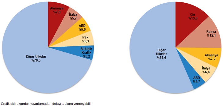 TÜİK verilerine göre dış ticaret açığı ilk çeyrekte yüzde 41,5 azalarak 20 milyar 343 milyon dolara geriledi. TÜİK, mart ayı ve 2024 yılının ilk çeyreğine ilişkin Dış Ticaret İstatistikleri'ni yayımladı. Türkiye İstatistik Kurumu ile Ticaret Bakanlığı iş birliğiyle genel ticaret sistemi kapsamında üretilen geçici dış ticaret verilerine göre; ihracat 2024 yılı Mart ayında, bir önceki yılın aynı ayına göre %4,1 azalarak 22 milyar 571 milyon dolar, ithalat %6,3 azalarak 29 milyar 912 milyon dolar olarak gerçekleşti. Genel ticaret sistemine göre ihracat 2024 yılı Ocak-Mart döneminde bir önceki yılın aynı dönemine göre %3,6 artarak 63 milyar 603 milyon dolar, ithalat %12,8 azalarak 83 milyar 945 milyon dolar olarak gerçekleşti. Enerji ürünleri ve parasal olmayan altın hariç ihracat, 2024 Mart ayında %5,1 azalarak 21 milyar 915 milyon dolardan, 20 milyar 789 milyon dolara geriledi. Mart ayında enerji ürünleri ve parasal olmayan altın hariç ithalat %6,7 azalarak 24 milyar 452 milyon dolardan, 22 milyar 805 milyon dolara geriledi. Enerji ürünleri ve parasal olmayan altın hariç dış ticaret açığı Mart ayında 2 milyar 16 milyon dolar olarak gerçekleşti. Dış ticaret hacmi %6,0 azalarak 43 milyar 594 milyon dolar olarak gerçekleşti. Söz konusu ayda enerji ve altın hariç ihracatın ithalatı karşılama oranı %91,2 oldu. Dış ticaret açığında sert düşüş Mart ayında dış ticaret açığı bir önceki yılın aynı ayına göre %12,4 azalarak 8 milyar 379 milyon dolardan, 7 milyar 341 milyon dolara geriledi. İhracatın ithalatı karşılama oranı 2023 Mart ayında %73,8 iken, 2024 Mart ayında %75,5'e yükseldi. Ocak-Mart döneminde dış ticaret açığı %41,5 azalarak 34 milyar 799 milyon dolardan, 20 milyar 343 milyon dolara geriledi. İhracatın ithalatı karşılama oranı 2023 Ocak-Mart döneminde %63,8 iken, 2024 yılının aynı döneminde %75,8'e yükseldi. Kaynak: TÜİK Mart ayında imalat sanayinin toplam ihracattaki payı %94,6 oldu Ekonomik faaliyetlere göre ihracatta, 2024 Mart ayında imalat sanayinin payı %94,6, tarım, ormancılık ve balıkçılık sektörünün payı %3,5, madencilik ve taşocakçılığı sektörünün payı %1,5 oldu. Ocak-Mart döneminde ekonomik faaliyetlere göre ihracatta imalat sanayinin payı %93,9, tarım, ormancılık ve balıkçılık sektörünün payı %4,1, madencilik ve taşocakçılığı sektörünün payı %1,5 oldu. Mart ayında en fazla ihracat yapılan ülke Almanya oldu Mart ayında ihracatta ilk sırayı Almanya aldı. Almanya'ya yapılan ihracat 1 milyar 749 milyon dolar olurken, bu ülkeyi sırasıyla; 1 milyar 288 milyon dolar ile İtalya, 1 milyar 265 milyon dolar ile ABD, 1 milyar 189 milyon dolar ile Irak, 1 milyar 172 milyon dolar ile Birleşik Krallık takip etti. İlk 5 ülkeye yapılan ihracat, toplam ihracatın %29,5'ini oluşturdu. Ocak-Mart döneminde ihracatta ilk sırayı Almanya aldı. Almanya'ya yapılan ihracat 5 milyar 232 milyon dolar olurken, bu ülkeyi sırasıyla; 3 milyar 804 milyon dolar ile ABD, 3 milyar 449 milyon dolar ile İtalya, 3 milyar 357 milyon dolar ile Irak ve 3 milyar 256 milyon dolar ile Birleşik Krallık takip etti. İlk 5 ülkeye yapılan ihracat, toplam ihracatın %30,0'ını oluşturdu. İthalatta ilk sırayı Çin aldı İthalatta Çin ilk sırayı aldı. Mart ayında Çin'den yapılan ithalat 3 milyar 900 milyon dolar olurken, bu ülkeyi sırasıyla; 3 milyar 632 milyon dolar ile Rusya Federasyonu, 2 milyar 146 milyon dolar ile Almanya, 1 milyar 902 milyon dolar ile İtalya, 1 milyar 407 milyon dolar ile ABD izledi. İlk 5 ülkeden yapılan ithalat, toplam ithalatın %43,4'ünü oluşturdu. Ocak-Mart döneminde ithalatta ilk sırayı Rusya aldı. Rusya Federasyonu'ndan yapılan ithalat 11 milyar 984 milyon dolar olurken, bu ülkeyi sırasıyla; 10 milyar 227 milyon dolar ile Çin, 6 milyar 282 milyon dolar ile Almanya, 4 milyar 632 milyon dolar ile İtalya, 4 milyar 146 milyon dolar ile ABD izledi. İlk 5 ülkeden yapılan ithalat, toplam ithalatın %44,4'ünü oluşturdu. Ülkelere göre ihracat, Mart 2024 - Ülkelere göre ithalat, Mart 2024 Kaynak: TÜİK