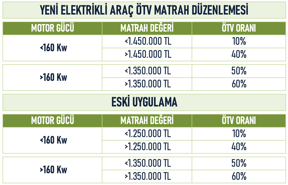 Motor gücü 160 kilovatın altında ve yüzde 10 özel tüketim vergisine tabi sadece elektrikli otomobiller için esas alınan matrah eşiği 1 milyon 250 bin liradan 1 milyon 450 bin liraya yükseltildi. Peki, bu değişiklik ne ifade ediyor? İşte detaylar.. Resmi Gazete'de yayımlanan kararla, motor gücü 160 kW altındaki sadece elektrik motorlu olan binek otomobiller için ÖTV oranına esas matrahta değişikliğe gidildi. Kararla, yüzde 10 ÖTV oranına tabi olan söz konusu otomobiller için esas alınan matrah eşiği 1 milyon 250 bin liradan 1 milyon 450 bin liraya çıkarıldı. 160 Kw üzerindeki elektrikli otomobillerde ise matrah aynı kaldı. Buna göre yeni matrah düzenlemesi sonrasında ÖTV matrah dilimleri şöyle listelendi: Kaynak: EBS Danışmanlık Değişiklikle ne amaçlanıyor? ÖTV matrahındaki değişiklik ile sadece elektrikli motora sahip olup söz konusu matrah eşiğine giren otomobillere daha düşük maliyetle ulaşılabilmesi hedefleniyor. Düzenlemeyle konvansiyonel yakıtla çalışan otomobillere olan talebin egzoz gazı salımı bulunmayan otomobillere yönelmesi teşvik edilirken, çevre kirliliğinin azaltılmasına da katkı sağlanması amaçlanıyor. Araç fiyatları nasıl etkilenecek? Yeni uygulamayla 160 Kw altında elektrikli bir otomobilin fiyatı 1 milyon 450 bin lira olduğunda yüzde 10 ÖTV oranına tabi tutulacak. Bu aracın satış fiyatı 1 milyon 450 bin 1 lira olursa, ÖTV vergi oranı yüzde 40 olarak tespit edilecek ve fiyatı da ÖTV’deki artışla birlikte yükselmiş olacak. Eski düzenlemede 160 Kw altındaki 1 milyon 250 bin lira ile 1 milyon 450 bin lira arasındaki elektrikli araçlarda uygulanan yüzde 40 ÖTV oranının yüzde 10’a çekilmiş olması bu aralıktaki araç fiyatlarında geri çekilme olabileceğini gösteriyor. Böylelikle fiyat ayarlamaları yapılarak bazı araçların da yüzde 10'luk dilime alınması bekleniyor. Düzenlemeyle ayrıca 1 milyon 250 bin altında kalan ve ÖTV dilimi nedeniyle fiyat artıramayan elektrikli araçlarda, 200 bin liralık fiyat artışının da önü açılmış bulunuyor. Buna göre 1 milyon 250 bin altındaki araç markalarına 200 bin liralık fiyat artışına giderek ÖTV dilimini yüzde 10 baremi içinde tutma imkanı tanınıyor. Ancak bu beklentiler, motor gücü 160 kilovatın altındaki sadece elektrikli araçları kapsıyor. Benzin, LPG ya da dizel araçlarda ÖTV matrah değişikliği var mı? Son alınan kararla birlikte benzin, LPG ya da dizel yakıtlı araçlar için herhangi bir ÖTV matrah değişikliği açıklanmadı. Hazine ve Maliye Bakanlığı'nın talebi ve Cumhurbaşkanı Recep Tayyip Erdoğan'ın onayı olmadan ÖTV matrahlarında değişiklik yapılamıyor. [news_id:714768]