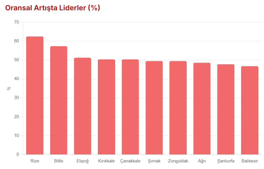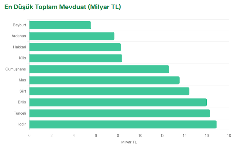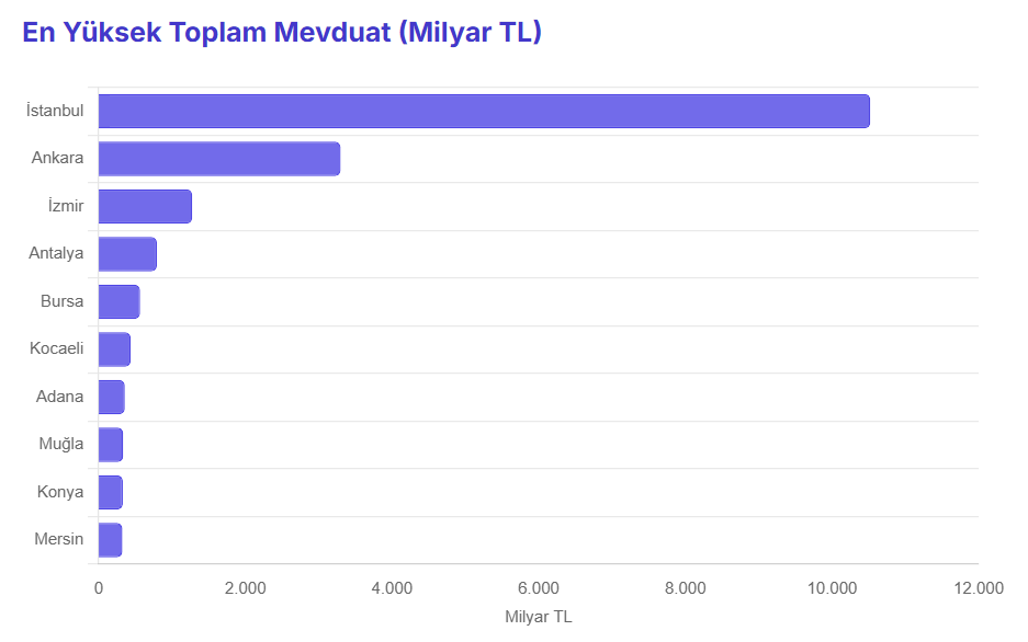 İstanbul, Ankara ve İzmir'in toplam mevduatı 3. çeyrek itibarıyla 15 trilyon 95 milyar 706 milyon liraya ulaştı. Bankacılık Düzenleme ve Denetleme Kurumu (BDDK) verilerinden derlenen bilgilere göre Türkiye'de yılın 3. çeyreği itibarıyla bankalardaki toplam mevduat yıllık bazda yüzde 39,33 artışla 24 trilyon 846 milyar 181 milyon 91 bin oldu. Geçen yıl bu dönemde toplam mevduat 17 trilyon 832 milyar 497 milyon 711 bin lira olmuştu. Mevduatın illere göre dağılıma bakıldığında ise 3 büyük şehrin payı dikkati çekti. Bu dönemde İstanbul, Ankara ve İzmir'in toplam mevduatı 15 trilyon 95 milyar 706 milyon 324 bin liraya çıktı. En fazla mevduata sahip iller En fazla mevduata sahip il 10 trilyon 522 milyar 200 milyon lirayla İstanbul oldu. Bu ili 3 trilyon 298 milyar 458 milyon 768 bin lirayla Ankara ve 1 trilyon 275 milyar 47 milyon 583 bin lirayla İzmir takip etti. Aynı dönemde Antalya'da 792 milyar 838 milyon 70 bin lira, Bursa'da 562 milyar 935 milyon 873 bin liralık mevduat toplandı. Buna göre en büyük 3 şehrin toplamı, mevduatın yüzde 60,8'ini oluşturdu. Yılın ocak-eylül döneminde yurtdışı yerleşiklerin mevduatı ise 1 trilyon 611 milyar 941 milyon 945 bin lira oldu. En fazla oransal artış Rize'de oldu Yıllık bazda bakıldığında İstanbullu yerleşiklerin bankalardaki mevduatları yüzde 44, Ankaralıların yüzde 41,6 ve İzmirlilerin yüzde 37 arttı. En büyük oransal artış ise yüzde 62,5 ile Rize'de oldu. Geçen sene 3. çeyrek sonu itibarıyla 33 milyar 192 milyon 866 bin lira olan Rizelilerin mevduatı, bu yılın 3. çeyreğinde 53 milyar 931 milyon 320 bin liraya çıktı. Oransal artışta Rize'yi yüzde 57,3 ile Bitlis, yüzde 51,2 ile Elazığ, yüzde 50,4 ile Kırıkkale ve 50,3 ile Çanakkale takip etti. Bankalardaki mevduatlarda en az oransal artış ise yüzde 15,1 ile Kahramanmaraş'ta gerçekleşti. Geçen yılın 3. çeyreğinde 82 milyar 885 milyon 342 bin lira olan mevduat, bu yılın aynı döneminde 95 milyar 408 milyon 535 bin liraya çıktı. Kahramanmaraş'ın ardından oransal olarak mevduatı en az artan iller, yüzde 17,8 ile Kastamonu, yüzde 22,8 ile Hakkari oldu. En az mevduata sahip il Bayburt oldu Bayburt'un toplam mevduatı geçen yılın aynı dönemine göre yüzde 38,9 artmasına karşın, şehir en az mevduata sahip il olarak sıralamadaki yerini korudu. Bayburt'taki yerleşiklerin toplam mevduatı 5 milyar 553 milyon 942 bin liraya ulaştı. Bayburt'tan sonra en düşük mevduata sahip iller ise 7 milyar 670 milyon lirayla Ardahan, 8 milyar 253 milyon lirayla Hakkari, 8 milyar 360 milyon lirayla Kilis ve 12 milyar 596 milyon lirayla Gümüşhane olarak sıralandı.