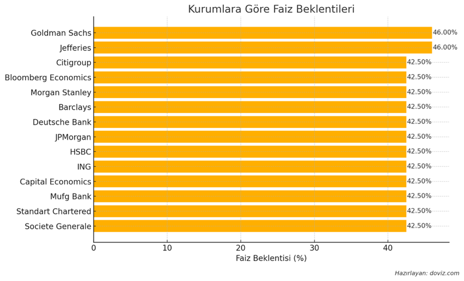 Türkiye Cumhuriyet Merkez Bankası (TCMB) nisan ayı faiz kararını bugün açıklayacak. Peki, karara ilişkin yabancı kurumların beklentisi ne yönde? İşte detaylar.. Türkiye Cumhuriyet Merkez Bankası (TCMB) Para Politikası Kurulu (PPK), bugün Fatih Karahan başkanlığında toplanacak. PPK toplantısının ardından nisan ayına ilişkin faiz kararı saat 14.00'te açıklanacak. Beklentiler politika faizinin sabit tutulması yönünde Kurul son olarak 6 Mart'taki toplantısında politika faizinde 250 baz puanlık indirime gitmiş ve faizi yüzde 45'ten yüzde 42,5’e çekmişti. 20 Mart tarihinde gerçekleştirilen sürpriz ara toplantıda ise politika faizi sabit bırakılırken gecelik borç verme faizi yüzde 46’ya çıkarılmıştı. Bu kararların ardından nisan ayı faiz kararı öncesinde 14 yabancı kurumun 12'si TCMB’nin faizi sabit bırakmasını beklediğini belirtti. Sadece Goldman Sachs ve Jefferies artan baskılara dikkat çekerek bir faiz artışının masada olduğunu öngördü. Kurumların politika faizine ilişkin tahminleri şöyle listelendi: [news_id:769107] [news_id:769077]