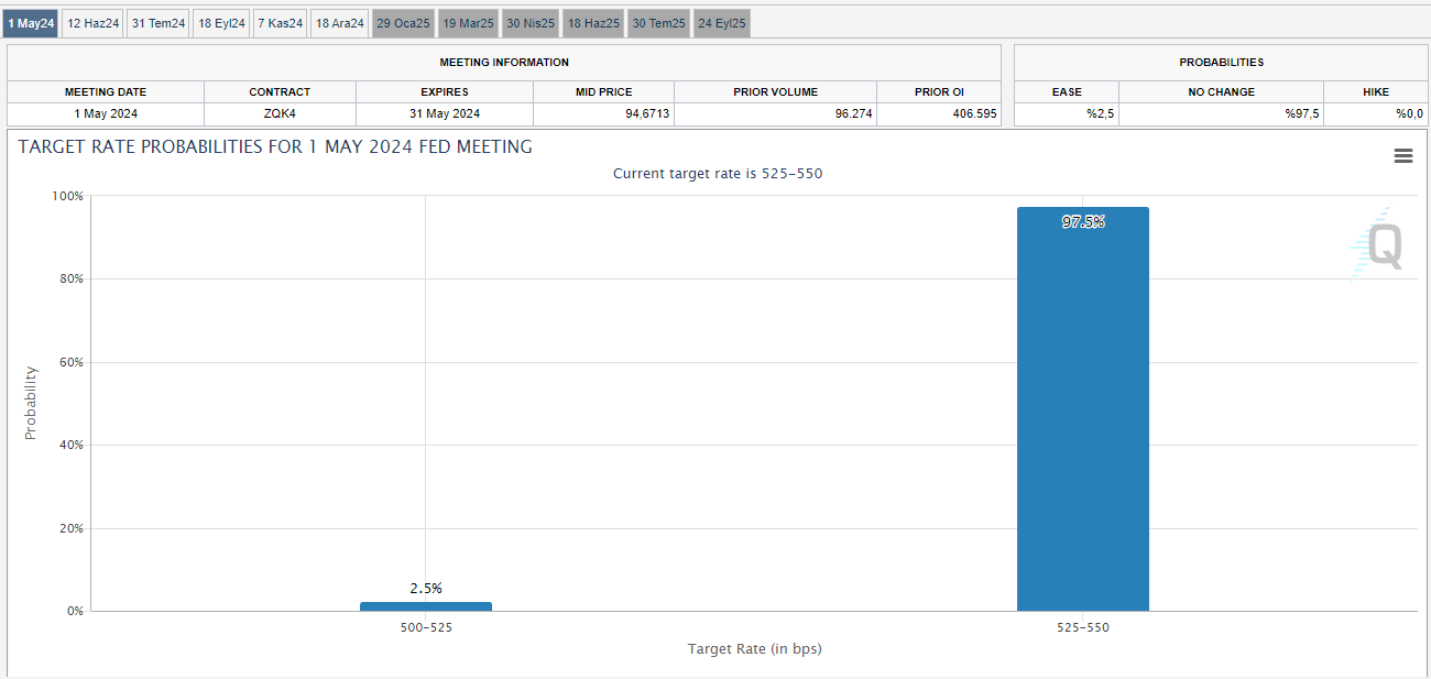 ABD Merkez Bankası (Fed), iki gün süren Federal Açık Piyasa Komitesi (FOMC) toplantısının ardından faiz kararını açıkladı. Fed, politika faizini yüzde 5,25 ile 5,50 aralığında sabit bıraktığını duyurdu. CME Fedwatch aracına göre piyasaların bugünkü karara yönelik beklentisi de politika faizinin sabit bırakılacağı yönündeydi. Buna göre erken saatlerde faizlerin sabit bırakılmasına yüzde 97,5 ihtimal veriliyordu. Kaynak: CME Fedwatch Stagflasyon manşette Fed Başkanı Jerome Powell ise para politikasına ilişkin son paylaşımında, son verilerin enflasyon hedefine dönüş konusunda başarı elde edilmediğini gösterdiğini belirterek, politika faizinin daha uzun süre yüksek kalabileceğine işaret etmişti. Powell'ın yüksek faiz ortamına işaret eden konuşmasının ardından JPMorgan CEO’sunun geçen hafta yaptığı stagflasyon uyarısı da global piyasaların odağına yerleşmişti. Buna göre Jamie Dimon, ABD ekonomisinin 1970'lerdeki stagflasyonu (düşük büyüme ve yüksek enflasyon) anımsatabilecek zorluklarla karşı karşıya olduğunu belirterek hissedarlarına uyarıda bulunmuştu. [news_id:731046] Öte yandan, ABD’de büyüme 2024'ün ilk çeyreğinde yüzde 1,6 ile tahminlerin altında kalırken, enflasyon ise son okumada yüzde 3,5 ile beklentilerin üzerine çıktı. İki veri de stagflasyon endişelerinin kuvvetlenmesine yol açtı. ABD’de 2021 yılından bu yana faiz ve enflasyonun seyri birlikte görüntülendiğinde ise ortaya şöyle bir tablo çıktı: Karar metninden öne çıkanlar "Son göstergeler ekonomik faaliyetlerin güçlü bir hızla genişlemeye devam ettiğini göstermektedir. İstihdam artışları güçlü seyretmiş ve işsizlik oranı düşük kalmıştır. Enflasyon geçtiğimiz yıl içinde gerilemiş ancak yüksek seyretmeye devam etmiştir. Son aylarda, Komite'nin yüzde 2'lik enflasyon hedefine doğru daha fazla ilerleme kaydedilememiştir. Komite, uzun vadede azami istihdam ve yüzde 2 oranında enflasyona ulaşmayı amaçlamaktadır. Komite, istihdam ve enflasyon hedeflerine ulaşılmasına yönelik risklerin geçtiğimiz yıl içinde daha iyi bir dengeye doğru ilerlediğini değerlendirmektedir. Ekonomik görünüm belirsizdir ve Kurul enflasyon risklerine karşı son derece dikkatli olmaya devam etmektedir. Hedeflerini desteklemek amacıyla Komite, federal fon oranı için hedef aralığını yüzde 5,25 ila 5,5 olarak korumaya karar vermiştir. Federal fon oranı için hedef aralığında yapılacak herhangi bir ayarlamayı değerlendirirken Komite, gelen verileri, gelişen görünümü ve risk dengesini dikkatle değerlendirecektir. Komite, enflasyonun sürdürülebilir bir şekilde yüzde 2'ye doğru ilerlediğine dair daha fazla güven kazanana kadar hedef aralığını düşürmenin uygun olacağını düşünmemektedir. Buna ek olarak Komite, Hazine tahvilleri ve ajans borç ve ajans ipoteğine dayalı menkul kıymet varlıklarını azaltmaya devam edecektir. Haziran ayından itibaren Komite, Hazine menkul kıymetlerinin aylık itfa üst sınırını 60 milyar dolardan 25 milyar dolara düşürerek menkul kıymet varlıklarının azalma hızını yavaşlatacaktır." Piyasalar nasıl tepki verdi? Fed'in faizi beklendiği gibi sabit bırakması sonrasında aylık bilanço küçültme büyüklüğünü 60 milyar dolardan 25 milyar dolara indirdiğini duyurması (parasal gevşeme) ons altın ve Bitcoin gibi varlıkların fiyatının yükselmesine yol açtı. Buna göre ilk tepki olarak ons altın 2.300 doların üzerine çıkarken, Bitcoin ise kayıplarının bir kısmını geri alarak 58.000 doların üzerini test etti. [news_id:731610]