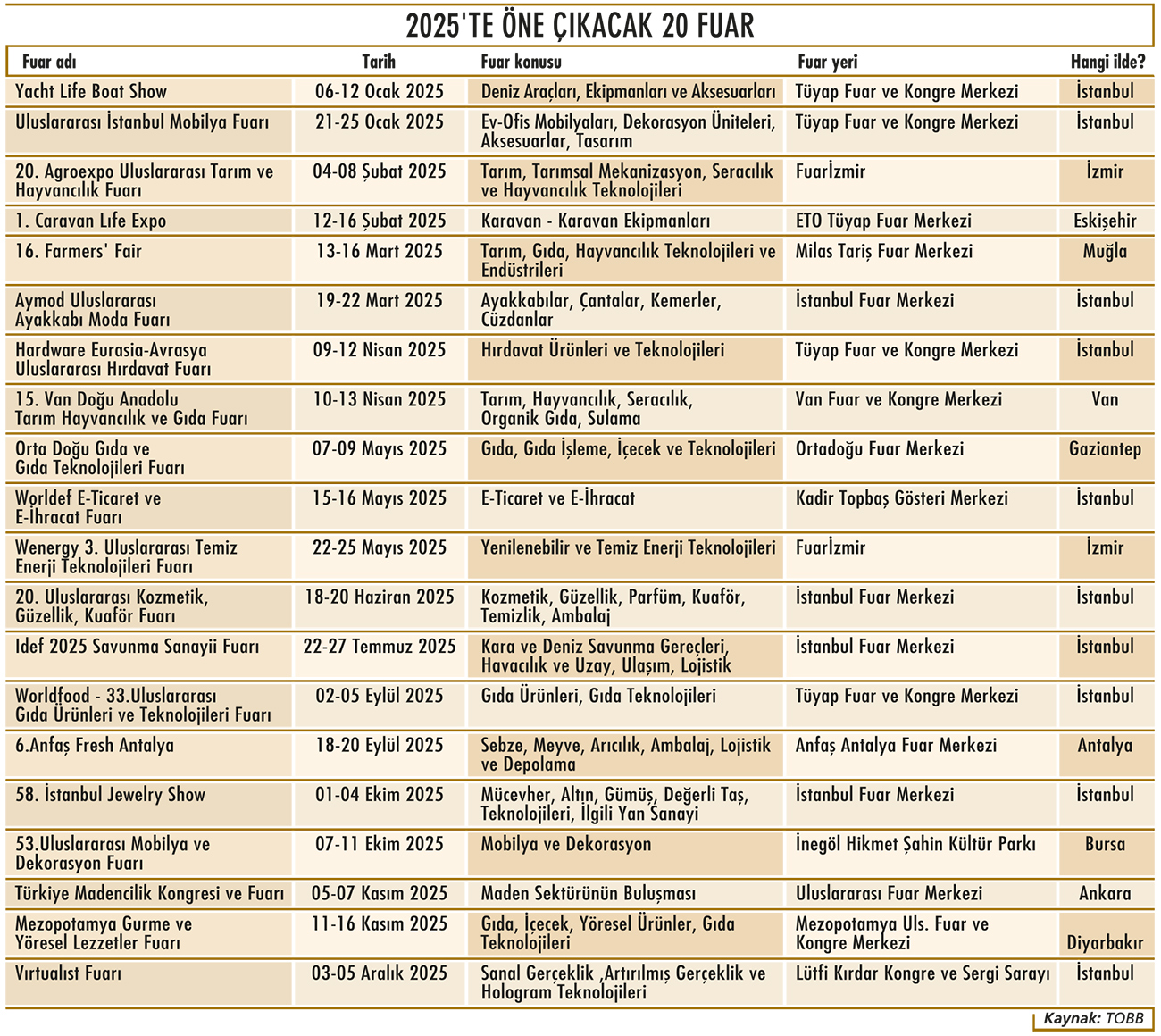 Ticaret Bakanlığı, Türkiye İhracat Kredi Bankası AŞ (Eximbank) ve İhracatı Geliştirme AŞ (İGE) ile imzalanan protokol kapsamında ihracatçı firmaların fuar alanı yapımı harcamalarının prefinansman desteğine dahil edildiğini duyurdu. Bakanlıktan yapılan açıklamada, 25 Kasım 2024'te imzalanan protokolün, ihracatçılara Eximbank tarafından prefinansman imkanı sağlanması ve İGE tarafından teminat verilmesine yönelik olduğu belirtildi. Bu çerçevede, fuar alanı yapım projelerine yönelik harcamaların prefinansman desteğine alınmasıyla birlikte, Türkiye’de düzenlenen uluslararası fuarların niteliğinin artırılması ve sektörün uluslararası rekabette öne çıkarılmasının hedeflendiği vurgulandı. Türkiye’nin fuar alanları dünya genelinde 10. sırada Bakanlığın açıklamasında, fuarcılık sektörünün ülke ekonomisine sağladığı katkıya dikkat çekilerek, "Ocak-Kasım 2024'te 'diğer iş hizmetleri' ihracatımız bir önceki yılın aynı dönemine göre yüzde 9 artarak 5,1 milyar dolara ulaştı. Türkiye’de düzenlenen fuarlara geçen yıl yaklaşık 22 bin yabancı katılımcı ve 900 bin yabancı ziyaretçi iştirak etti." ifadelerine yer verildi. Türkiye’deki fuar alanlarının toplam kapasitesinin 2024 yılı itibarıyla yaklaşık 767 bin metrekareye ulaştığı ve bu kapasitenin dünya genelindeki fuar alanlarının yüzde 1,7’sini oluşturduğu aktarıldı. Açıklamada, Türkiye’nin fuar alanı büyüklüğü açısından dünyada 10’uncu, Avrupa’da ise 6’ncı sırada yer aldığı ifade edildi. Yeni fuar alanları için kamu-özel sektör iş birliği modeli Yeni fuar alanlarının yapımı ve mevcut alanların kapasitesinin artırılmasının sektörün gelişimine önemli katkılar sunduğu belirtilen açıklamada, şu değerlendirmelerde bulunuldu: "Bakanlığımızın koordinasyonunda gerçekleştirilen Yatırım Ortamının İyileştirilmesi Koordinasyon Kurulu (YOİKK), 'yeni fuar alanlarının geliştirilmesi konusunda kamu-özel iş birliği çerçevesinde alternatif modellerin oluşturulması' eylemi kapsamında geçen yılın sonunda önemli bir rapor hazırlamıştır. Bu çalışma ile dünyada fuar alanı yapımında uygulanan alternatif modeller incelenmiş, örnek ülke uygulamaları değerlendirilmiş ve Türkiye için uygun model önerileri geliştirilmiştir." Fuarcılık sektörüne yatırımlar devam edecek Bakanlık açıklamasında, fuarcılık sektörüne yönelik çalışmalar kapsamında "Yurt Dışı Etkinlik Organizatörlerinin Yetkilendirilmesi ve Değerlendirilmesine İlişkin Genelge"nin yürürlüğe girdiği hatırlatılarak şu bilgilere yer verildi: "Yurt dışında gerçekleştirilen etkinliklerin sağlıklı bir şekilde işlemesi için düzenlenen ticari etkinlikler belirli kural ve şartlara bağlanarak denetim mekanizması standart hale getirildi. Bu kapsamda, yurt dışı etkinlik organizasyonu düzenlemek üzere 18 organizatör yetkilendirildi. Geçen yıl hizmet sektörlerine yönelik 27 yurt dışı etkinlik organizasyonu gerçekleştirildi." Bakanlığın fuarcılık sektörüne yönelik yatırımları artırarak sürdüreceği belirtilen açıklamada, "Önümüzdeki dönemde de fuarcılık sektörüne yatırımlar yapmaya devam edeceğiz. Ülkemizin bu alandaki tanıtımının en iyi şekilde yapılması ve ülke ekonomimize katkısının en üst seviyede gerçekleşmesi için çalışmalarımız sürecek." değerlendirmesi yapıldı. Kaynak: Ekonomist