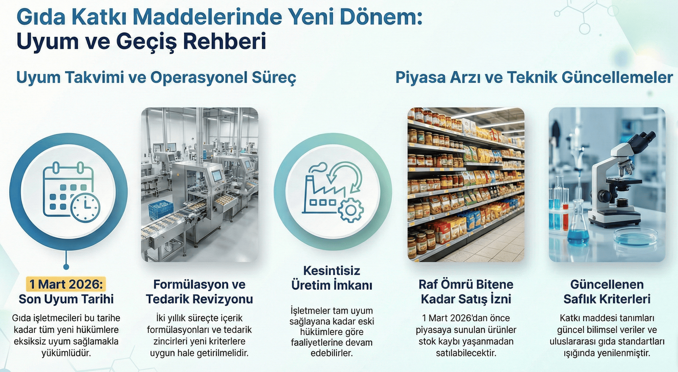 Gıda işletmeleri için gıda katkı maddelerinin spesifikasyonlarına yönelik yeni düzenlemelere uyum sağlamaları amacıyla 1 Mart tarihine kadar süre tanınırken, bu dönemden önce piyasaya sunulmuş ürünlerin raf ömürleri tamamlanana dek satışına izin verildi. Tarım ve Orman Bakanlığı tarafından titizlikle hazırlanan Türk Gıda Kodeksi Gıda Katkı Maddelerinin Spesifikasyonları Hakkında Yönetmelik'te Değişiklik Yapılmasına Dair Yönetmelik, Resmi Gazete içerisinde yayımlanarak resmen yürürlüğe girdi. Yasal düzenleme ile birlikte gıda sektöründe faaliyet gösteren tüm işletmelere değişen kurallara adapte olabilmeleri adına belirli bir geçiş süreci imkanı sunuldu. Söz konusu düzenleme, gıda güvenliği ve standartlarının en üst seviyede tutulmasını hedeflerken, sektör paydaşlarının operasyonel süreçlerini bu standartlara göre revize etmelerini amaçlıyor. İşletmelere tanınan geçiş süreci ve uygulama esasları Alınan karara göre gıda işletmecileri, 1 Mart 2026 tarihine kadar yönetmelik içerisinde belirtilen tüm hükümlere eksiksiz şekilde uyum sağlamakla yükümlü tutuldu. Bu süre zarfında gıda işletmecileri, yeni yönetmelik hükümlerine tam anlamıyla uyum sağlayana kadar mevcut yürürlükte bulunan eski hükümlere göre faaliyetlerini sürdürmeye devam edebilecek. Bu yöntemle üretim süreçlerinde herhangi bir aksama yaşanmasının önüne geçilmesi hedefleniyor. İşletmelerin bu iki yıllık süre içerisinde tedarik zincirlerini ve içerik formülasyonlarını yeni kriterlere uygun hale getirmesi bekleniyor. Piyasadaki ürünlerin durumu ve liste güncellemeleri Gıda işletmecileri tarafından 1 Mart 2026 tarihinden önce piyasaya arz edilmiş olan tüm ürünler ile bu maddeleri ihtiva eden gıdalar, ambalajları üzerindeki raf ömrü sona erene kadar piyasada özgürce bulunabilecek ve tüketicilere sunulabilecek. Bu esneklik, üreticilerin ellerindeki mevcut stokları değerlendirmesine ve ekonomik kayıpların önlenmesine yardımcı olacak şekilde tasarlandı. Öte yandan, spesifikasyonları ayrıntılı olarak belirtilen gıda katkı maddeleri ile ilgili resmi listelerde de bazı teknik güncellemeler ve değişiklikler yapıldı. Bu değişiklikler, uluslararası gıda standartları ve güncel bilimsel veriler ışığında katkı maddelerinin saflık kriterlerini ve tanımlarını yeniden belirliyor. *Aşağıdaki görselde metnin bir özetini bulabilirsiniz.