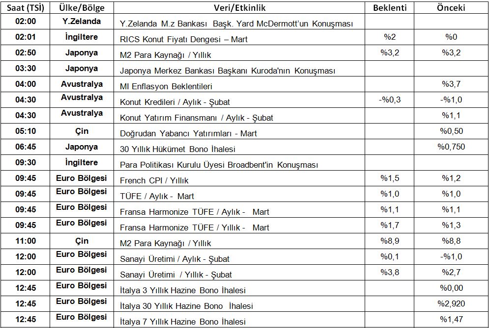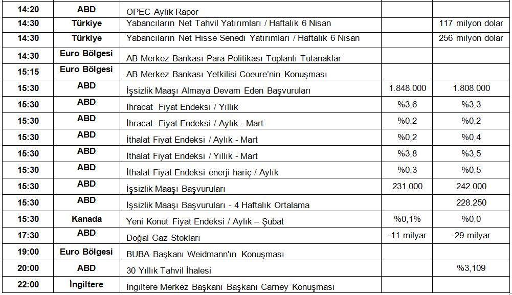 Global Piyasalarda Bugün: 12 Nisan 2018, Perşembe