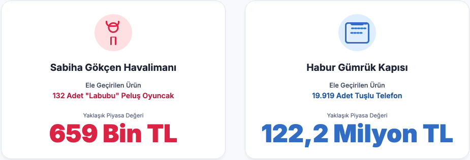 Ticaret Bakanlığı ekiplerinin İstanbul Sabiha Gökçen Havalimanı ve Habur Gümrük Kapısı’nda düzenlediği iki ayrı operasyonda, piyasa değeri toplamda yaklaşık 122 milyon 829 bin lira olan 132 peluş oyuncak ve 19 bin 919 adet tuşlu telefon yakalandı. Eşyalarla ilgili adli süreç başlatıldı. Ticaret Bakanlığı’ndan yapılan açıklamada, Gümrükler Muhafaza ekiplerinin İstanbul Sabiha Gökçen Havalimanı ve Habur Gümrük Kapısı’nda gerçekleştirdiği iki farklı operasyonda önemli bir kaçakçılık girişiminin engellendiği ifade edildi. İstanbul Gümrük Muhafaza Kaçakçılık ve İstihbarat Müdürlüğü’nce yürütülen risk analiz çalışmaları doğrultusunda, İstanbul Sabiha Gökçen Havalimanı'na iniş yapan iki yolcunun takibe alındığı bildirildi. Açıklamada, söz konusu yolcuların “gümrüğe tabi eşyam yok” anlamına gelen yeşil hattı kullanarak çıkış yapmaya çalıştığı, bu durum üzerine valizlerinde gerçekleştirilen detaylı aramada 132 adet peluş oyuncak ele geçirildiği kaydedildi. Oyuncakların, kamuoyunda "Labubu" adıyla bilinen peluş ürünler olduğuna dikkat çekilerek, “Satışa uygunluğu incelenen ve piyasa değeri yaklaşık 659 bin lira olan oyuncaklara el konuldu.” ifadesi kullanıldı. Eşyaların ülkeye yasa dışı yollardan sokulmaya çalışıldığı yönünde değerlendirmeler doğrultusunda gerekli yasal işlemlerin başlatıldığı belirtildi. Habur’da tırın içinden 19 bin 919 tuşlu telefon çıktı, piyasa değeri 122 milyon lirayı aştı Ticaret Bakanlığı tarafından aktarılan bilgilere göre, gerçekleştirilen ikinci operasyon Habur Gümrük Kapısı'nda gerçekleşti. Kapıkule Gümrük Kapısı’ndan transit taşıma rejimi kapsamında Türkiye’ye giriş yapan bir tırın, transit refakat belgesi eşliğinde Habur’a yönlendirildiği, ekipler tarafından ise söz konusu aracın ilk giriş noktasından itibaren takip altına alındığı bildirildi. Habur’da yapılan detaylı arama sonucunda, beyan edilen 20 bin adet akıllı telefon yerine 19 bin 919 adet tuşlu telefonun taşındığı ortaya çıkarıldı. Bu gelişme üzerine, kaçak yollarla yurt içinde bırakılmak istenen eşyaların toplam piyasa değerinin yaklaşık 122 milyon 170 bin lira olarak hesaplandığı açıklandı. “Beyan dışı olarak yurt içinde bırakılmak istenen bu kaçak eşyanın değeri yaklaşık 122 milyon 170 bin lira olarak hesaplandı. Söz konusu eşyalara el konularak gerekli işlemler başlatıldı. Olaylara ilişkin adli süreçler, İstanbul Anadolu ile Silopi Cumhuriyet başsavcılıkları nezdinde titizlikle yürütülmektedir.” ifadelerine yer verilen açıklamada, adli ve idari işlemlerin sürdüğü aktarıldı. Bakanlık kararlılığını vurguladı: Çocukları tehdit eden ürünlere de dikkat ediliyor Ticaret Bakanlığı açıklamasında, “Ticaret Bakanlığı, dürüst ticaret erbabını korumak, haksız rekabetin önüne geçmek, ülke ekonomisini yasa dışı ticaret kaynaklı vergi kaybından korumak amacıyla çalışmaya devam ediyor. 2025'in 'Aile Yılı' ilan edilmesi kapsamında, özellikle çocuklar ve aile yapısını tehdit eden unsurlara karşı toplumsal sorumluluk bilinciyle hareket etmek amaçlarıyla kaçakçılıkla mücadelesini kararlılıkla sürdürmektedir.” ifadelerine yer verildi.