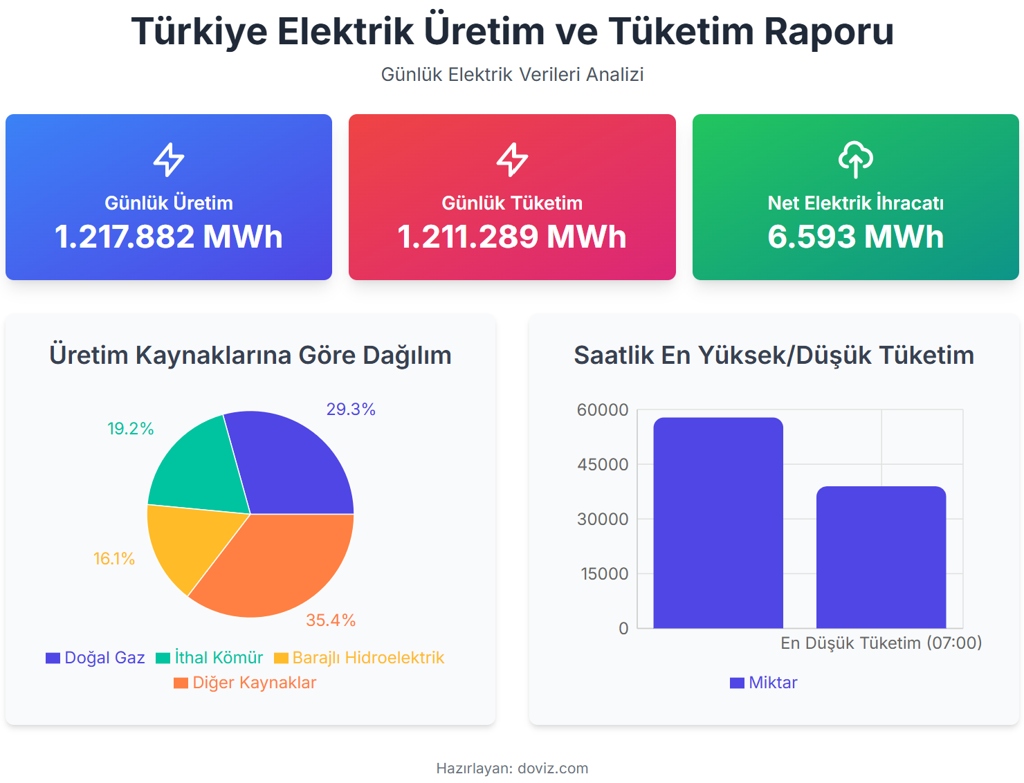Türkiye'de dün 1 milyon 211 bin 289 megavatsaatlik tüketimle günlük bazda tüm zamanların en fazla elektrik tüketimi gerçekleşti. Türkiye Elektrik İletim AŞ'nin güncellenen verilerine göre günlük bazda dün 1 milyon 217 bin 882 megavatsaat elektrik üretildi, tüketim ise 1 milyon 211 bin 289 megavatsaat olarak kayıtlara geçti. Söz konusu tüketimle günlük bazda en yüksek seviye görüldü. Yurt genelinde hava sıcaklıklarının yükselmesine paralel olarak artan klima kullanımı ve tarımsal sulama, elektrik tüketiminde zirvenin görülmesinde etkili oldu. Elektrik tüketiminde daha önceki en yüksek seviye, 23 Temmuz 2024'te 1 milyon 208 bin 706 megavatsaat olarak kayıtlara geçmişti. Dün en yüksek elektrik tüketimi 57 bin 802 megavatsaatle saat 15.00'te, en düşük tüketim ise 38 bin 936 megavatsaatle 07.00'de gerçekleşti. Üretimde ilk sırada yüzde 29,3 payla doğal gaz santralleri yer aldı. Bunu, yüzde 19,2 ile ithal kömür santralleri ve yüzde 16,1 ile barajlı hidroelektrik santralleri izledi. Türkiye, dün 15 bin 496 megavatsaat elektrik ihracatı, 8 bin 903 megavatsaat elektrik ithalatı yaptı.