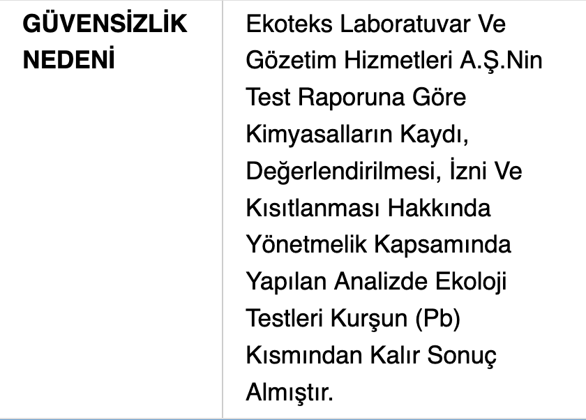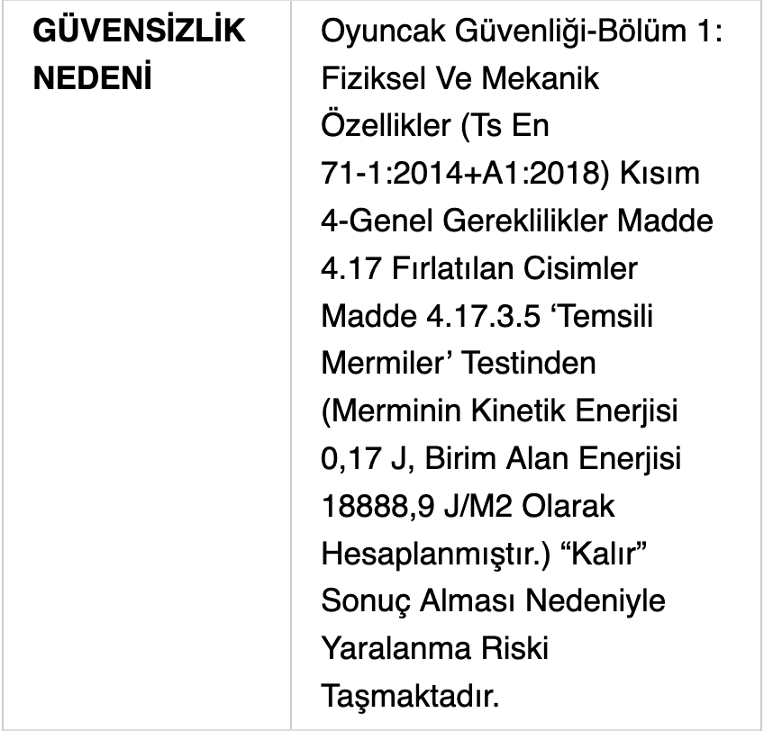 Ticaret Bakanlığı, Güvensiz Ürün Bildirim Sistemi'nde yer alan ve insan sağlığını tehdit eden ürünler listesine yeni eklemeler yaparak, kamuoyunu bilgilendirmeye devam ediyor. Son güncellemeyle birlikte listede yer alan tehlikeli ürünlere okul üniforması da dahil edildi. Kimyasal Risk Taşıyan Okul Üniforması Dün yapılan açıklamada, Elegance By Özakkaymak markasına ait mavi okul üniformasının kimyasal risk içerdiği ve bu nedenle tehlikeli ürünler listesine dahil edildiği bildirildi. Bakanlık, "Ekoteks Laboratuvar ve Gözetim Hizmetleri A.Ş.'nin test raporuna göre kimyasalların kaydı, değerlendirilmesi, izni ve kısıtlanması hakkında yönetmelik kapsamında yapılan analizde ekoloji testleri kurşun (Pb) kısmından kalır sonuç alınmıştır." ifadelerine yer verdi. Bakanlık, okul üniformasının piyasadan toplatılmasına karar verildiğini de açıkladı. Sağlık Riski Taşıyan Oyuncaklar ve Tabancalar 4 Mart 2025 tarihinde yapılan duyuruda, Uçarlar Oyuncak tarafından satışa sunulan suda büyüyen oyuncağın insan sağlığını tehdit ettiği belirlenerek piyasadan toplatılma kararı alındı. Ayrıca Bayraklı Gaming markasına ait boncuk atan tabancanın boğulma ve yaralanma riski taşıdığı belirlenerek satışının durdurulmasına karar verildi. Delta markası altında piyasaya sürülen boncuk atan tabancanın da yaralanma riski taşıdığı tespit edilerek toplatılacağı bildirildi.