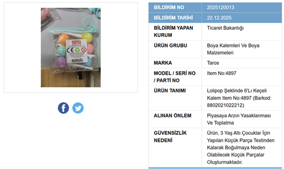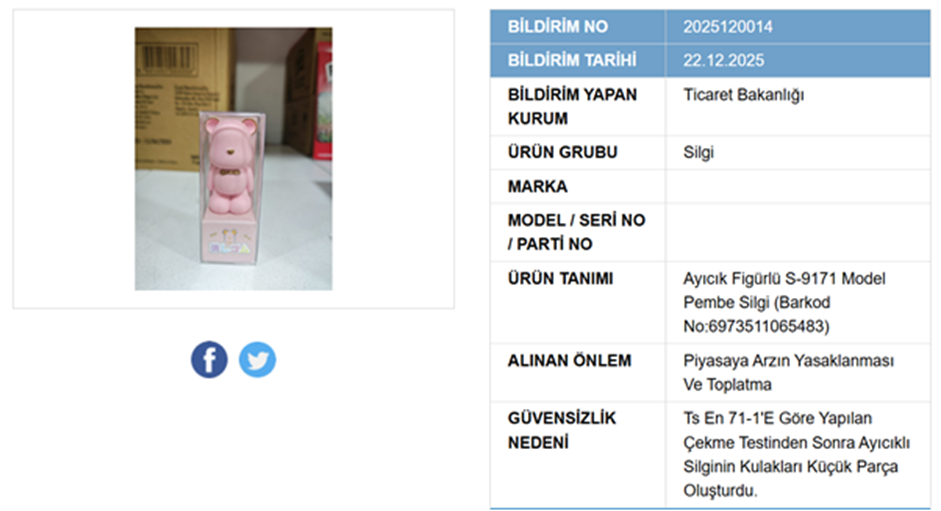 Ticaret Bakanlığı, gerçekleştirdiği denetimler sonrasında güvensiz olduğunu tespit ettiği iki kırtasiye ürününün piyasaya arzını yasakladı. Bakanlık piyasada bulunan ürünlerin ise acil toplatılmasına karar verdi. Ticaret Bakanlığı ekiplerinin denetimleri sonrası güvensiz olduğu belirlenen ürünler kamuoyu ile paylaşılıyor. Tüketiciler açısından risk oluşturulan ürünler Güvensiz Ürün Bilgi Sistemi (GÜBİS) üzerinden ilan ediliyor. Son denetimlerde çocuk sağlığını tehdit eden iki kırtasiye ürününün belirlenen güvenlik standartlarını karşılamadığı tespit edildi. Bakanlık tarafından yapılan açıklamada, güvensiz olarak tespit edilen kırtasiye ürünlerinde, boğulmaya neden olabilecek küçük parçalar oluştuğu belirtildi. Bu kapsamda Ticaret Bakanlığı, Çınar Toptan Kırtasiye tarafından piyasaya sunulan silgi ve Taros marka boya malzemelerinin piyasadan toplatılmasına karar verdi. Kaynak: GÜBİS Güvensiz ürüne ilişkin tüketicilerin hakları Ticaret Bakanlığı’nın ilgili sayfasında güvensiz olarak ilan edilen ürünlerden birini almış kullanıcıların haklarına da yer verildi. İlgili ürünü alan tüketicilerin üretici/ithalatçı firmaya başvurarak haklarını (değişim, para iadesi gibi) kullanabileceği belirtildi. Talebin kabul görmemesi halinde ise genel hukuk yollarının açık olduğu paylaşıldı. [news_id:770879]