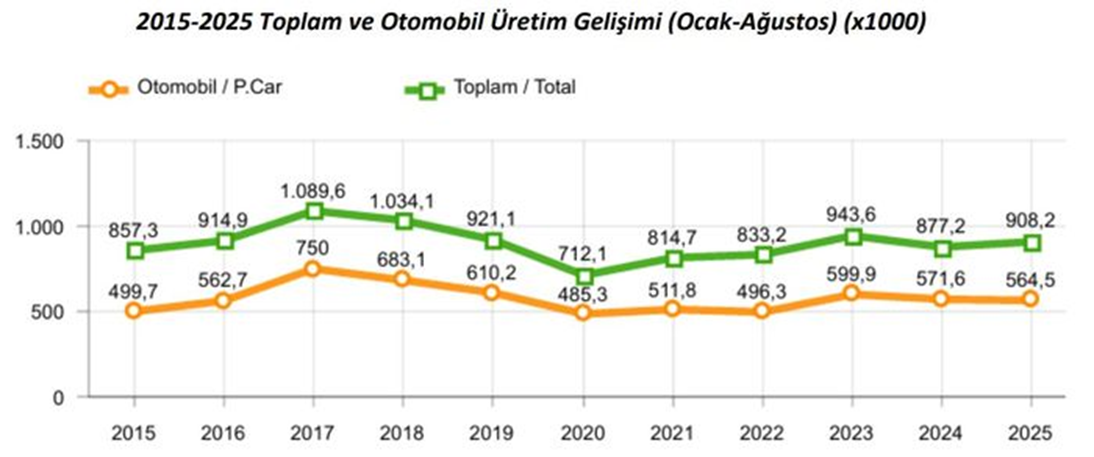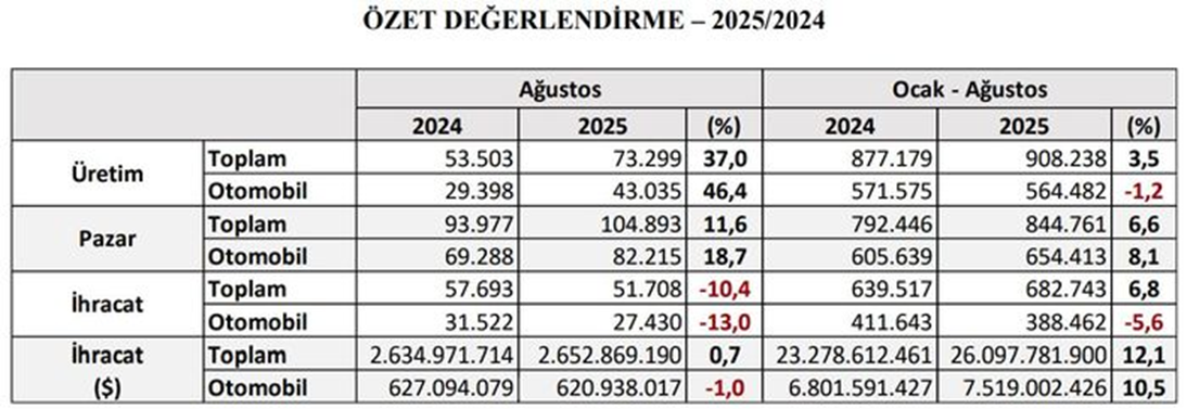 Otomotiv Sanayii Derneği (OSD) tarafından açıklanan verilere göre yılın ilk 8 ayında toplam hafif ticari araç satışları yüzde 4 arttı. Bu dönemde ithal hafif ticari araç satışlarında yüzde 19 artış, yerli ticari araç satışlarında ise yüzde 30 oranında azalış yaşandı. Otomotiv Sanayii Derneği (OSD), 2025 yılının ocak-ağustos dönemine ait üretim ve ihracat adetleri ile pazar verilerini açıkladı. Buna göre yılın ilk 8 aylık döneminde toplam otomotiv üretimi bir önceki yılın aynı dönemine göre yüzde 4 arttı ve 908 bin 238 adede ulaştı. Otomobil üretimi ise yüzde 1 azalarak 564 bin 482 adet olarak gerçekleşti. Traktör üretimiyle birlikte toplam üretim ise 928 bin 81 adedi buldu. Yılın ilk sekiz aylık döneminde ticari araç grubunda üretim bir önceki yılın aynı dönemine göre yüzde 13, hafif ticari araç grubunda yüzde 15 artarken ağır ticari araç grubunda ise yüzde 6 geriledi. Bu dönemde, otomotiv sanayisinin kapasite kullanım oranı yüzde 64 olarak gerçekleşti. Araç grubu bazında kapasite kullanım oranları ise hafif araçlarda (otomobil+hafif ticari araç) yüzde 65, kamyon grubunda yüzde 54, otobüs-midibüs grubunda yüzde 64 ve traktörde yüzde 40 seviyesinde gerçekleşti. İhracat otomobilde azaldı, ticaride arttı Yılın ilk sekiz aylık döneminde otomotiv ihracatı geçtiğimiz yılın aynı dönemine göre adet bazında yüzde 7 artarak 682 bin 743 adet olarak gerçekleşti. Bu dönemde otomobil ihracatı bir önceki yılın aynı dönemine göre yüzde 6 düşüş kaydederken, ticari araç ihracatı ise yüzde 29 oranında arttı. Traktör ihracatı da 2024 yılının aynı dönemine göre yüzde 30 azalarak 7 bin 218 adet olarak gerçekleşti. Yerlilerin payı düşüyor OSD'nin raporunda, 2019–2021 yıllarında yüzde 40–41 bandında seyreden otomobil satışlarındaki yerli araç payının son yıllarda kademeli bir düşüş gösterdiği görüldü. Buna göre 2025 yılı Ocak-Ağustos döneminde otomobil pazarında ithal araçların payı yüzde 71 olarak gerçekleşti. Bu dönemde toplam otomobil ve ithal otomobil satışları yüzde 8, yerli otomobil satışları yüzde 9 oranlarında arttı. Öte yandan, OSD verilerine göre, 2025 yılı Ocak-Ağustos döneminde hafif ticari araç (minibüs+kamyonet) pazarında ise ithalatın payı yüzde 80 olarak gerçekleşti. Bu oran 2024’ün aynı döneminde yüzde 70 seviyesindeydi. Yılın ilk 8 ayında toplam hafif ticari araç satışları yüzde 4 arttı. Bu dönemde ithal hafif ticari araç satışlarında yüzde 19 artış oranı dikkat çekerken, yerli ticari araç satışları ise yüzde 30 oranında azaldı.