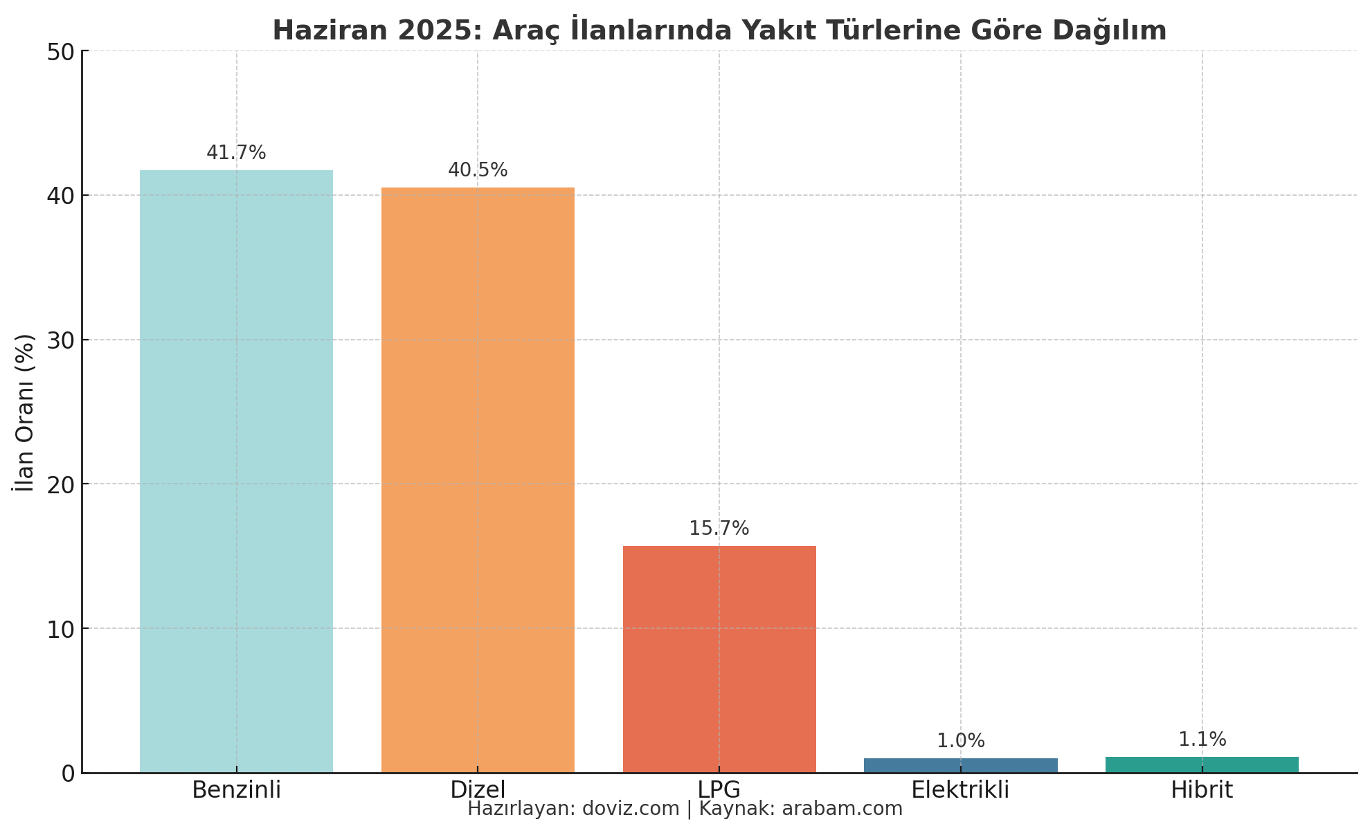 Çevrim içi ilan platformu tarafından hazırlanan rapora göre haziran ayında ikinci el araçların ortalama fiyatı 807 bin 159 liraya çıktı. Peki, bu dönemde en çok ilan verilen araç modelleri hangileri oldu? İşte detaylar.. Arabamcom, haziran ayının ikinci el ilan verilerine ilişkin hazırladığı analizini yayımladı. Arabamcom Aylık Fiyat Endeksi'ne göre mayısta 805 bin 729 lira olan ilan fiyatları, haziranda 807 bin 159 lira oldu. İlandaki nominal fiyatlar ortalama yüzde 0,18 artış gösterdi. Enflasyondan arındırılmış reel fiyatlar ise mayısa kıyasla yüzde 1,17 oranında geriledi. Haziranda ilanlarda en çok görülen markalar sırasıyla Fiat, Renault, Ford, Volkswagen, Opel, Peugeot, Hyundai, Toyota, Citroen ve BMW oldu. Model bazında bakıldığında ise haziranda ilanlarda en çok bulunan otomobil modelleri, Clio, Megane, Astra, Egea, Corolla, Focus, Passat, Polo, Civic ve Corsa olarak sıralandı. Verilere göre haziranda fiyat aralıklarına göre ilan oranları benzer seyretti. 1 milyon lira ve üzerindeki araçların ilan oranı yüzde 29'a yükselerek bir önceki aya göre yüzde 1,7 artış gösterdi. Haziranda 5 yaşa kadar araçların ilan oranı, mayısa göre yüzde 2,3 artışla yüzde 29,3'e yükseldi. 6-9 yaş aralığındaki araçların oranı yüzde 15,7 olurken, 10-15 yaş aralığındaki araçlar için bu oran yüzde 26,1 olarak kaydedildi. 16-20 yaş aralığındaki araçlar yüzde 12,4 pay alırken, 20 yaş ve üzeri araçların ilan oranı da yüzde 16,5 olarak tespit edildi. Benzinli araç ilanları artışa geçti İlana giren araçlar yakıt tipine göre incelendiğinde benzinli araçların ilan oranında dikkat çekici artış gözlemlendi. Haziranda benzinli araçların ilan oranı geçen aya göre yüzde 7,7 puan artarak yüzde 41,7'ye yükseldi. Aynı dönemde, dizel araçların ilan oranı yüzde 5,9 puanlık düşüşle yüzde 40,5'e gerilerken, LPG'li araçların oranı da yüzde 2,5 puanlık düşüşle yüzde 15,7'ye indi. Elektrikli araçların ilan oranında yüzde 0,7'lik, hibrit araçların oranında ise yüzde 1,4'lük artış kaydedildi. Haziranda 10 bin-50 bin kilometre aralığındaki araçların ilan oranı, bir önceki aya göre yüzde 1,1 puan artışla yüzde 13'e yükseldi. 200 bin-300 bin kilometre aralığındaki araçların ilan oranı, 1 puanlık düşüşle yüzde 26'ya gerilerken, 300 bin kilometre üzerindeki araçların ilan oranı da 1 puan düşerek yüzde 12 oldu. Otomatik vitesli araçların ilan oranı ise yüzde 1,2 puanlık artışla yüzde 38'e yükseldi. Aynı dönemde düz vitesli araçların ilan oranı yüzde 0,8 puan düşüşle yüzde 55'e gerilerken, yarı otomatik vitesli araçların ilan oranı ise yüzde 7 seviyesinde sabit kaldı. "Sıfır ve elektrikli araçlara geçiş eğilimi güçleniyor" Açıklamada görüşlerine yer verilen Arabamcom Üst Yöneticisi (CEO) Önder Oğuzhan, 2025'in ilk yarısında otomotiv sektörünün ekonomik zorluklarla karşılaştığını belirtti. Oğuzhan, "Ocak-Mart döneminde satışlarda, bir önceki yıla göre düşüş yaşanırken, nisan ayında toparlanma sinyalleriyle fiyatlarda artış gözlemledik. Ancak haziran ayında, bayram öncesi başlayan durağanlık bayram sonrasında da devam etti ve piyasa genelinde hareketlilik sınırlı kaldı. Haziran ayında, kilometresi düşük, yaşı genç ve otomatik vitesli araç ilanlarında artış gözlemlendi. Bu durum, bazı kullanıcıların araçlarını satarak elektrikli araçlara geçiş yapma veya sıfır araç satın alma eğiliminde oldukları şeklinde değerlendirilebilir." ifadelerini kullandı. [news_id:778295] [news_id:777384]