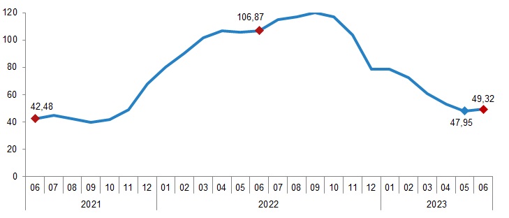 TÜİK verilerine göre, İnşaat Maliyet Endeksi 2023 Haziran'da bir önceki aya göre yüzde 4,43, bir önceki yılın aynı ayına göre yüzde 49,32 arttı. Böylece sene başından bu yana artış hızı düşen inşaat maliyetleri, haziran ayı itibarıyla yeniden yükseliş trendine girdi. Türkiye İstatistik Kurumu (TÜİK) 2023 Haziran’a ilişkin İnşaat Maliyet Endeksi’ni açıkladı. Buna göre, inşaat maliyet endeksi 2023 Haziran’da bir önceki aya göre yüzde 4,43, bir önceki yılın aynı ayına göre yüzde 49,32 arttı. İnşaat maliyet endeksi yıllık değişim oranı (%), Haziran 2023 Bir önceki aya göre malzeme endeksi yüzde 5,81, işçilik endeksi yüzde 0,86 arttı. Ayrıca bir önceki yılın aynı ayına göre malzeme endeksi yüzde 35,67, işçilik endeksi yüzde 105,11 arttı. Malzemelerde bir ayda yüzde 8,3’lük artış Bina inşaatı maliyet endeksi, bir önceki aya göre yüzde 3,83, bir önceki yılın aynı ayına göre yüzde 51,80 arttı. Bir önceki aya göre malzeme endeksi yüzde 5,04, işçilik endeksi yüzde 0,80 arttı. Ayrıca bir önceki yılın aynı ayına göre malzeme endeksi yüzde 37,95, işçilik endeksi yüzde 105,53 arttı. Bina dışı yapılar için inşaat maliyet endeksi, bir önceki aya göre yüzde 6,45, bir önceki yılın aynı ayına göre yüzde 41,69 arttı. Bir önceki aya göre malzeme endeksi yüzde 8,33, işçilik endeksi yüzde 1,05 arttı. Ayrıca bir önceki yılın aynı ayına göre malzeme endeksi yüzde 28,91, işçilik endeksi yüzde 103,57 arttı.