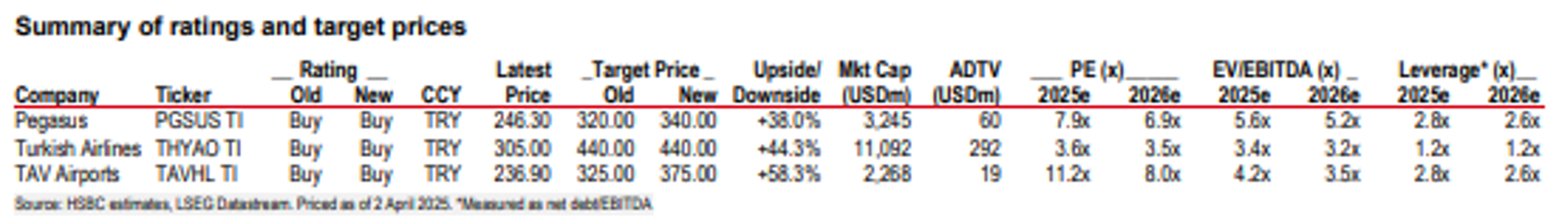 HSBC, Borsa İstanbul'da işlem gören havacılık sektörü hisselerinde hedef fiyatlarını yukarı yönlü revize etti. HSBC, Türkiye havacılık sektörü hisseleri için hedef fiyatlarını güncelledi. Buna göre konuya ilişkin raporda, TAV Havalimanları, THY ve Pegasus için "al" tavsiyesini koruyan banka, üç şirkette de yükseliş potansiyeli olduğunun altını çizdi. HSBC, TAV Havalimanları (TAVHL) için hedef fiyatını 325 TL’den 375 TL’ye yükseltti ve "al" tavsiyesini korudu. Türk Hava Yolları (THYAO) için hedef fiyatını 440 TL seviyesinde sabit tutan banka, Pegasus (PGSUS) için hedef fiyatını 320 TL’den 340 TL’ye çıkardı. HSBC’nin değerlendirmesine göre 2025 yılının ilk çeyreği, olumsuz hava koşulları ve Ramazan ayının etkisiyle Türkiye havacılık sektörü açısından zayıf geçti. Ancak, nisan ayı itibarıyla toparlanma sinyalleri bekleniyor. Yaz sezonunun başlamasıyla birlikte sektörün ana taşıyıcılarında önemli bir trafik artışı öngörülüyor. Kaynak: HSBC [news_id:766431]