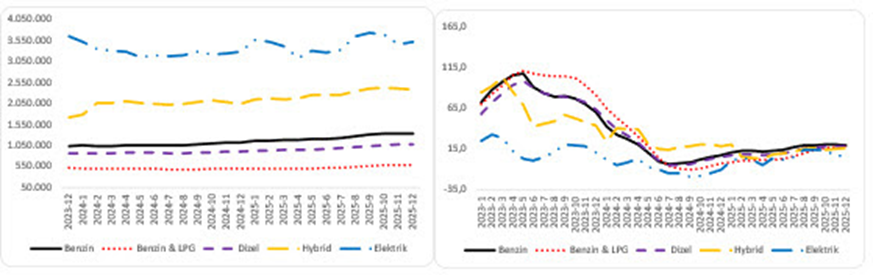 BETAM tarafından hazırlanan rapora göre 2025 yılında otomobil talebi bir önceki yıla kıyasla yüzde 10 artış kaydetti. Bahçeşehir Üniversitesi Ekonomik ve Toplumsal Araştırmalar Merkezi (BETAM) tarafından sahibinden ilanlarından hareketle hazırlanan ve ikinci el otomobil piyasasının genel durumunu analiz eden "Otomobil Piyasası Görünümü" raporu yayımlandı. İlgili rapora göre aralık ayında otomobil talep endeksi hem bir önceki aya hem de geçen yılın aynı ayına kıyasla yüzde 10 oranında artış gösterdi. Otomobil piyasasında canlılık göstergesi olarak kullanılan satılık otomobil ilanlarının ne kadar süre yayında kaldıklarını gösteren kapatılan ilan yaşı ise bir önceki aya kıyasla 0,9 gün uzayarak 21,6 gün oldu. Reel fiyatlarda düşüş devam ediyor İlgili dönemde enflasyon etkisinden arındırılmış (reel) fiyatlarda yıllık düşüş sürerken cari fiyatlarda artış devam etti. Ortalama satılık otomobil cari fiyatı ise geçen yılın aralık ayına göre yüzde 22 yükselerek 1 milyon 108 bin TL’ye ulaştı. Aynı dönemde reel fiyatlar yüzde 6,8 gerilerken bir önceki aya kıyasla yüzde 0,3 oranında azalış kaydetti. Şekil 1: Ortalama otomobil reel fiyatı (2020 Ocak=100) - Ortalama otomobil reel fiyatının yıllık değişimi (%) Fiyat değişiminde lider B sınıfı oldu Araç sınıflarına göre fiyat değişimleri incelendiğinde tüm segmentlerde yıllık artış kaydedildi. En yüksek artış yüzde 26,6 ile B sınıfında görülürken C ve D sınıfları yüzde 25,4 ile onu izledi. En sınırlı artış ise yüzde 22,7 ile E sınıfında gerçekleşti. Ortalama fiyatlar B sınıfında 738 bin 796 TL, C sınıfında 984 bin 149 TL, D sınıfında 1 milyon 420 bin TL ve E sınıfında 2 milyon 292 bin TL seviyesinde belirlendi. Şekil 2: Araç sınıfına göre ortalama otomobil fiyatı (TL) - Araç sınıfına göre ortalama otomobil fiyatının yıllık değişimi (%) Genç araçlarda fiyat artışı dengeli seyretti Model yılına göre fiyat hareketlerinin de incelendiği raporda, eski model araç grubunda (2004-2018) en yüksek yıllık artış yüzde 15,7 ile 2014-2018 aralığında görüldü. En düşük artış ise yüzde 6,9 ile 2004-2008 grubunda kaydedildi. Genç araç grubunda 2019 modeller yüzde 17’lik yıllık artışla öne çıkarken ikinci el piyasasının en güncel segmenti olan 2024 model araçların ortalama fiyatı bir önceki aya kıyasla yüzde 0,5 düşerek 2 milyon 13 bin TL’ye geriledi. Şekil 3: Yaş gruplarına göre ortalama otomobil fiyatı (TL) - Yaş gruplarına göre ortalama otomobil fiyatının yıllık değişimi (%) En yüksek fiyat artış benzinli araçlarda Yakıt türlerine göre yapılan değerlendirmede, ortalama otomobil fiyatı bir önceki yılın aynı ayına kıyasla tüm yakıt türlerinde yükseldi. En yüksek yıllık artış yüzde 19,5 ile benzinli araçlarda kaydedilirken benzin & LPG grubunda yüzde 18,3, dizel araçlarda yüzde 18,7, hibritlerde ise yüzde 15,9 artış yaşandı. Elektrikli otomobiller ise yüzde 7,2 ile en sınırlı artışı gösteren grup oldu. Ortalama fiyatlar, benzinli araçlarda 1 milyon 341 bin TL, benzin & LPG’de 596 bin 782 TL, dizelde 1 milyon 85 bin TL, hibritte 2 milyon 381 bin TL ve elektrikli araçlarda 3 milyon 520 bin TL olarak gerçekleşti. Şekil 4: Yakıt türüne göre ortalama otomobil fiyatı (TL) - Yakıt türüne göre ortalama otomobil fiyatının yıllık değişimi (%) Talep endeksi yükseliyor Otomobil piyasasındaki arz ve talep dengesi incelendiğinde, aralık ayında canlanma dikkat çekti. Otomobil talep endeksi hem bir önceki aya hem de geçen yılın aynı ayına kıyasla yüzde 10 arttı. Satılık otomobil ilan sayısı bir önceki aya göre yüzde 1,2 artarken satılan otomobil sayısı yüzde 20,1 oranında belirgin bir artış gösterdi. Bu gelişmelere bağlı olarak satılan otomobil sayısının satılık ilan sayısına oranı 4 puan yükselerek yüzde 25,2 seviyesine çıktı. Şekil 5: Satılan otomobil sayısının satılık otomobil ilan sayısına oranı (%) - Satılan ve satılık otomobil sayısı [news_id:797591]