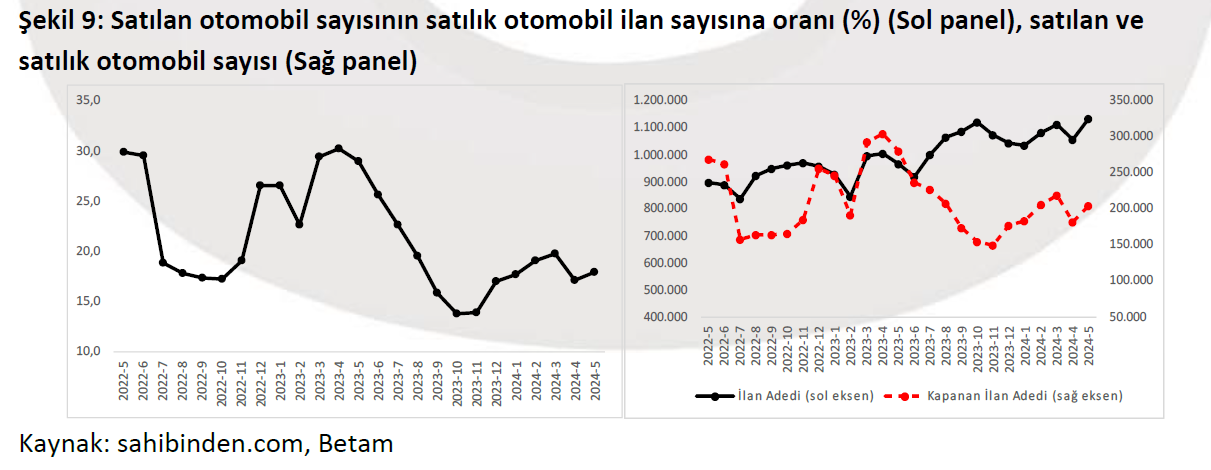 sahibinden ile BETAM işbirliğinde hazırlanan araştırmanın mayıs sonuçlarına göre ikinci el otomotiv sektöründe reel satış fiyatları düşüşünü 11. aya taşıdı. sahibinden.com "Otomobil Piyasası Görünümü" raporunun mayıs ayı sonuçlarını paylaştı. İkinci el otomobil piyasasının genel durumunu, fiyatlarını, arz ve talep dengesini; araç sınıflarına, yaş gruplarına ve yakıt türlerine göre analiz eden "Otomobil Piyasası Görünümü" raporunda son dönemde otomobil piyasasında yaşanan değişimler incelendi. Rapora göre, mayıs ayında otomobil talep endeksi nisana kıyasla yüzde 5,2 artarken, geçen yılın mayıs ayına kıyasla ise yüzde 17 düşüş kaydetti. Otomobil piyasasındaki canlılık göstergesi olarak kabul edilen satılan otomobil sayısının satılık ilan sayısına oranı ise 0,8 artarak yüzde 18 oldu. Bu göstergenin detayları incelendiğinde hem ilan sayısının hem de satılan otomobil sayısının arttığı göze çarptı. Öte yandan, otomobil piyasasında bir diğer canlılık ölçütü olarak kullanılan satılık otomobil ilanlarının ne kadar süre yayında kaldıklarını gösteren kapatılan ilan yaşı geçen aya kıyasla 1,7 gün kısalarak 22,8 gün oldu. Reel satış fiyatları düşmeye devam ediyor Enflasyondan arındırıldığında otomobil ortalama reel satış fiyatlarının ise 11 aydır düşüşünü sürdürdüğü gözlendi. Buna göre reel fiyat endeksi nisana kıyasla mayısta yüzde 4,2 azalarak 175,6 puana geriledi. Nisanda 867 bin 813 lira olan ortalama otomobil fiyatı ise mayısta 875 bin 959 lira oldu. Ancak, nisanda yüzde 23,3 olan otomobil fiyatlarındaki yıllık değişim oranı mayısta yüzde 12,9'a geriledi. [news_id:736228]