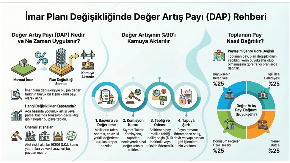 Resmi Gazete'de yayımlanan yönetmelik değişikliğine göre imar planında değişiklik yapacak kişiler artık değer artışlarından kaynaklanan payın yüzde 90'ını kamuya ödeyecek. Çevre, Şehircilik ve İklim Değişikliği Bakanlığı, imar planı değişikliklerinden kaynaklanan taşınmaz değer artışının kamuya aktarılmasına ilişkin usul ve esasları belirleyen Değer Artış Payı Uygulama Yönetmeliği'ni yayımladı. Şehirlerin plansız büyümesinin ve keyfi imar değişikliklerinin önüne geçilmesi hedeflenen yönetmelikle, oluşan değerin yüzde 90’ının kamuya aktarılması sağlanacak. Söz konusu değer artış payı sadece arsadaki değer artışına yönelik olacak. Öte yandan vatandaşlara ödeme kolaylığı da sunulacak. Değer artış payını peşin ödemek isteyenler için yüzde 10 indirim uygulanırken, isteyen mülk sahipleri taksitle ödeme yapabilecek. Kamulaştırılamayan taşınmazlar için yeni çözüm Yeni düzenleme kapsamında ayrıca 2942 sayılı kamulaştırma kanunu ek-1 maddesi kapsamındaki; özel mülkiyette olup daha önce resmi kurum, idari tesis, okul, sağlık tesisi gibi kamu hizmet alanı olarak planlanan ancak kamulaştırılamayan taşınmazlar için de çözüm üretildi. Eğer kamu kurumları bu alanlara artık ihtiyaç duymuyorsa ve ilgili idare de onay verirse, bu alanlarda plan değişikliği yapılabilecek. Böylece mülkiyet üzerindeki kısıtlamalar kaldırılarak vatandaş mağduriyetinin önüne geçilecek. Kamu ile mülk sahipleri arasındaki hukuki anlaşmazlıkların dava sürecine taşınmadan çözülebilmesi sağlanacak. Değer artış payı hesaplaması nasıl yapılacak? Taşınmazın plan değişikliği öncesi ve sonrası piyasa değeri, en az iki yetkili gayrimenkul değerleme kuruluşu tarafından hazırlanacak raporlarla belirlenecek. Kıymet takdir komisyonu, bu raporların ortalamasından aşağı olmamak üzere nihai değer artışını belirleyecek. Plan değişikliği talep eden taşınmaz sahipleri, değer artışının hesaplanması için hazırlanacak değerleme raporlarının ücretini ödemekle yükümlü olacak. Değer artış payı alınmayacak durumlar hangileri? Bazı alanlar ve işlemler değer artış payı kapsamı dışında tutuldu. Bunlar; 📌Riskli alanlar ve rezerv yapı alanları, 📌Kamu yatırımları ve kamu mülkiyetindeki taşınmazlar, 📌Mazbut ve mülhak vakıflara ait alanlar, 📌Emsale etki etmeyen yükseklik düzenlemeleri, 📌İdare tarafından resen yapılan plan değişiklikleri olarak sıralandı. Toplanan gelirler ne olacak? Toplanan pay, plan değişikliğinin yapıldığı yerin büyükşehir olup olmamasına göre farklı oranlarda dağıtılacak. Büyükşehir Belediyesine yüzde 25, ilgili ilçe belediyesine yüzde 25, dönüşüm projeleri özel hesabına yüzde 25, genel bütçeye yüzde 25 oranında pay edilecek.
