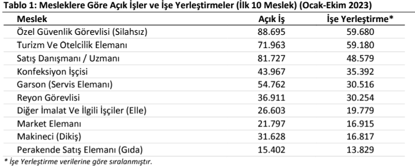 Türkiye İş Kurumu (İŞKUR) ekim ayı sonu itibarıyla 1 milyon 11 bin 750 kişinin işe yerleşmesine aracılık etti. İstihdamın korunması ve artırılması, işsizlerin mesleki niteliklerinin geliştirilmesi, işsizliğin azaltılması ve özel politika gerektiren grupların iş gücü piyasasına kazandırılmasını amaçlayan İŞKUR, istihdama aracılık etmeye devam ediyor. Bu kapsamda, ekim ayında 68 bin 734'ü erkek, 46 bin 727'si kadın olmak üzere ülke genelinde 115 bin 461 kişi işe yerleştirildi. İŞKUR'un yılbaşından ekim ayı sonuna kadar geçen dönemde işe yerleştirilmesine aracılık ettiği kişi sayısı, 1 milyon 11 bin 750'ye ulaştı. En fazla yerleştirme yapılan şehirler Ocak-ekim döneminde en fazla işe yerleşme, 204 bin 245 kişiyle İstanbul'da oldu. İstanbul'u 79 bin 643 kişiyle Ankara, 53 bin 943 kişiyle İzmir, 53 bin 300 kişiyle Bursa ve 43 bin 299 kişiyle Kocaeli izledi. Bu süreçte en az kişinin işe yerleştirildiği iller ise 325 kişiyle Ardahan, 456 kişiyle Hakkari, 635 kişiyle Gümüşhane ve 705 kişiyle Kilis oldu. Ocak-ekim döneminde en fazla işe yerleştirme ise sanayi sektöründe "imalat" alanında gerçekleştirildi. En fazla işe yerleştirmenin yapıldığı meslekler, silahsız özel güvenlik görevlisi, turizm ve otelcilik elemanı, satış danışmanı/uzmanı oldu. Kaynak: İŞKUR En fazla açık iş başvurusu imalat sektöründen Ayrıca iş verenler tarafından ekim ayında 236 bin 365 açık iş ilanı, kuruma iletildi. Ocak-ekim döneminde alınan açık iş başvurusu sayısı ise 2 milyon 269 bin 272 olarak kayıtlara geçti. Açık iş başvurularının yüzde 98,8'i özel sektörden geldi. Sektörler itibarıyla en fazla açık iş, 968 bin 11 ile "imalat" sektöründen oldu.
