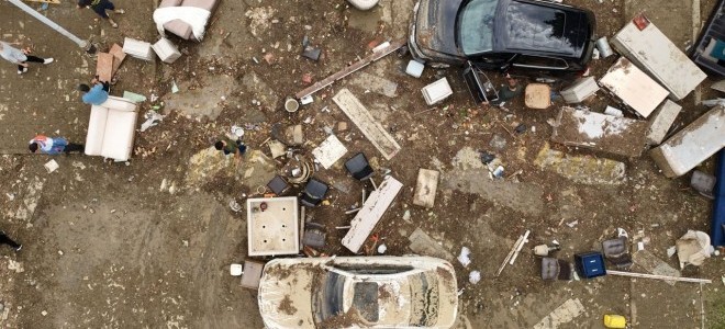 İstanbul'da yaşanan sağanak yağış sonrası temizlik çalışmaları devam ederken, MASKO Yönetim Kurulu Başkanı Mehmet Mutlu, "Zararın 700-800 milyon bandına çıkabileceğini düşünüyoruz" dedi. İstanbul'da yaşanan sel felaketi sonrasında özellikle Başakşehir'deki büyük maddi hasar oluştu. Mobilyacılar sitesindeki mağazaların içinde bulunan çok sayıda mobilya sel sularının altında kalırken, selin ardından temizleme çalışmaları bugün de devam etti. Buna göre, çok sayıda iş makinesi ve belediye işçisi, esnafla birlikte temizleme çalışmalarını sürdürdü. Bazı mağaza sahipleri selden etkilenmeyen ürünleri taşırken, sel sularından etkilenen bazı ürünler ise suyla temizlenmeye başladı. Aynı blokta 40 mağazanın selden çok ciddi şekilde etkilendiğini söyleyen MASKO Yönetim Kurulu Başkanı Mehmet Mutlu, kısa süre içerisinde mağazaların onarılıp tekrar faaliyete geçeceğini ifade etti. Yaralarını sarmaya çalışan mağaza sahipleri mağduriyetlerini dile getirirken aynı zamanda devletten yardım beklediklerini de belirtti. Bölgede elektrik kesintisi olduğunu da belirten site yetkilisi temizleme çalışmalarının bitmesinin ardından elektriğin de tekrar verileceğini belirtti. "Zararın 700-800 milyon bandına çıkabileceğini düşünüyoruz" Mehmet Mutlu, konuyla ilgili açıklamasında, "Hasar tespit çalışmaları yapılıyor ama ilk etapta mağazalarımızın 400-500 milyon lira civarında hem dekorasyon hem ürün olarak bu sokakta bulunan 40 mağazamızdaki zararın bu olduğu yönünde şu anda öngörümüz var. MASKO'nun kendi zararı var. İstinat duvarları yıkıldı. 7-8 aracımız burada mağazaların içine girdi bunlar selden etkilendi. Bu zararlar var. Tabii ki altyapı da sorunumuz var. Bununla birlikte zararın 700-800 milyon bandına çıkabileceğini düşünüyoruz" dedi. [news_id:706487]