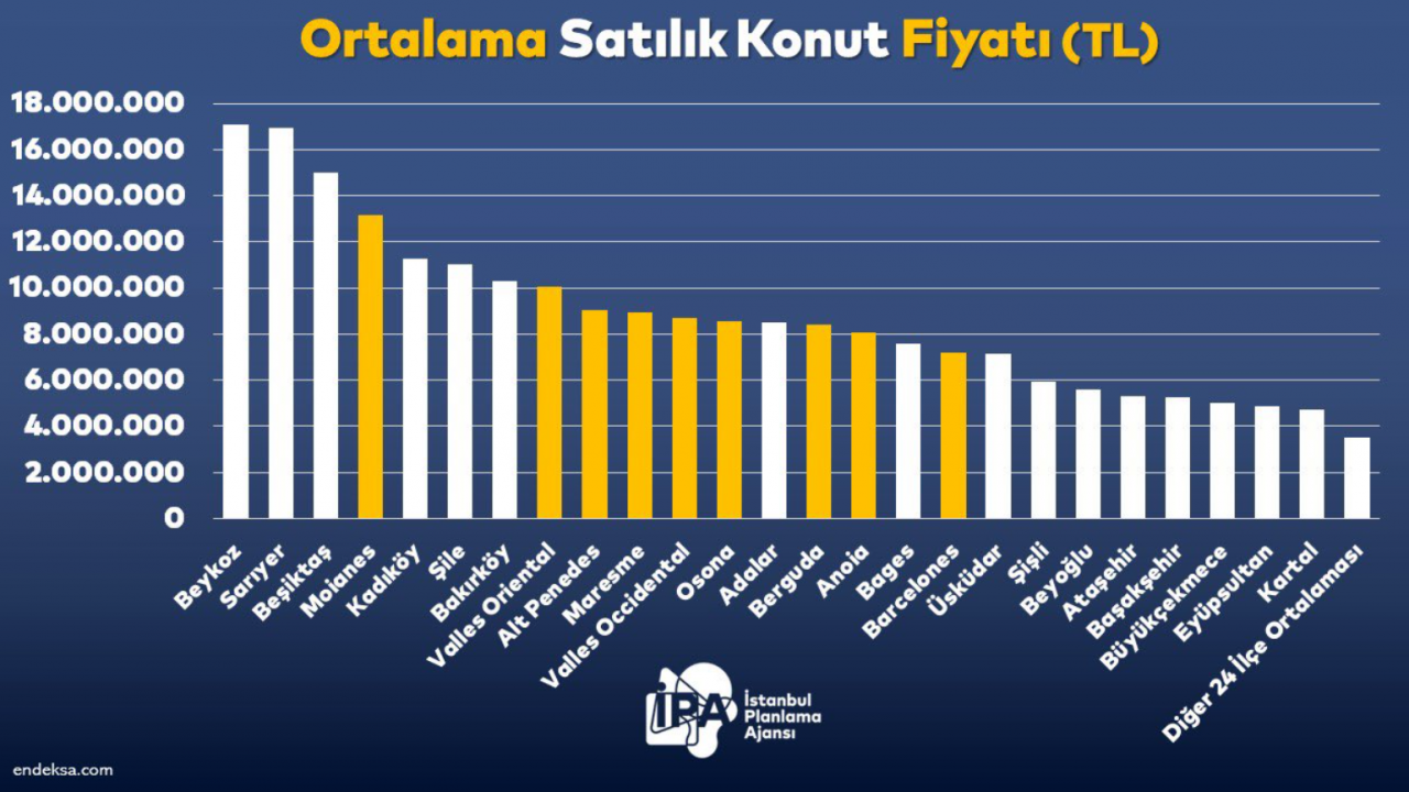 İPA Başkanı Buğra Gökce, İstanbul’da Beykoz, Sarıyer, Beşiktaş’taki ortalama satılık konut fiyatlarının Barcelona’dan pahalı hale geldiğini aktardı. İstanbul Büyükşehir Belediyesi’ne (İBB) bağlı İstanbul Planlama Ajansı (İPA) Başkanı Dr. Buğra Gökce, sosyal medya hesabından İstanbul’daki konut fiyatlarıyla ilgili veriler paylaştı. Gökce, Endeksa’nın verilerine atıfta bulunarak, “Beykoz, Sarıyer, Beşiktaş, Kadıköy, Şile ve Bakırköy'deki ortalama satılık konut fiyatları, Barcelona'da bir bölge hariç, diğer tüm bölgelerden daha pahalı” derken, örnek olarak Bakırköy'de ortalama satılık konut fiyatını 10 milyon 300 bin olurken, Barcelona Valles Oriental bölgesinde de aynı fiyata ev almanın mümkün olduğunu belirtti. Kaynak: İPA Kiralarda İstanbul daha pahalı Gökce’nin aktardığına göre konut kiralarında İstanbul'un birçok ilçesi Barcelona'dan daha pahalı oldu. Eyüpsultan'da ortalama konut kirası 25 bin 513 lira seviyesindeyken, Barcelona'nın Anoia, Bages ve Moianes bölgelerinde bu fiyata ev kiralamak mümkün dedi. Dr. Buğra Gökce, paylaşımında verilerin yanında çözüm önerilerine de değindi: “İstanbul genelinde ortalama kira bedeli 22 bin 535 liraya çıkarken, 2018-2024 döneminde ortalama satılık konut bedeli yüzde 888, kira bedeli yüzde 1025 arttı. İstanbul'daki konut ve kira bedelinin Barcelona'yı geçecek noktaya gelmesi uygulanan politikaların bir sonucu olarak karşımıza çıkıyor. Türkiye'de konut piyasası dengesini kaybederken, vatandaşlarımız da uygun fiyatlı güvenli konut bulmakta zorlanıyor. Sosyal yardımlı sosyal konut, sosyal kiralık konut, mülk sosyal konut ve halk konut tipinde çeşitli seçeneklerle sosyal konut üretimi başlamalıdır. Sosyal konut üreten küçük, orta ve büyük üreticilere farklı vergi ve yükümlülükler getirilerek, özellikle küçük ve orta boy teşebbüslerin konut üretimi piyasasında sağlıklı bir şekilde yer alması sağlanmalıdır. Sosyal konut üreten ve inşaat malzemesi üretimi yapan teşebbüsler desteklenerek, yerli inşaat sanayisinin rekabet gücü arttırılmalıdır. Yabancılara vatandaşlık karşılığı konut satış uygulaması birçok dünya kentinde olduğu gibi konut piyasası dengeye oturana kadar askıya alınmalıdır.” [news_id:739838]