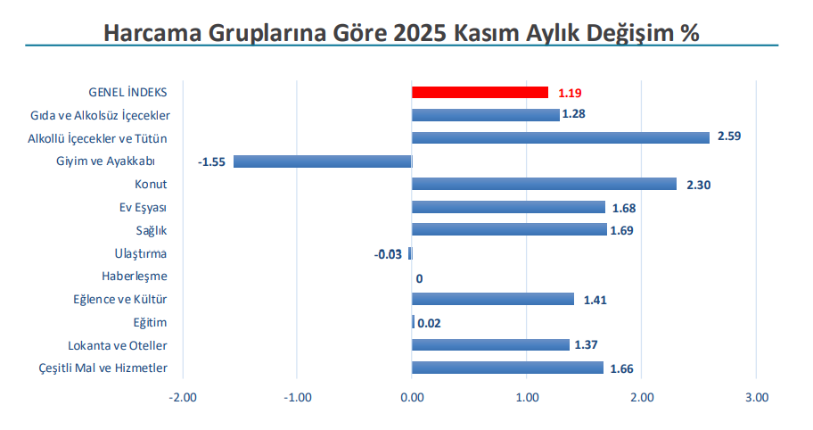 İTO, İstanbul'da perakende fiyatların kasım ayında aylık yüzde 1,19, yıllık ise yüzde 38,28 artış gösterdiğini açıkladı. İstanbul Ticaret Odası (İTO), kasım ayı Tüketici Fiyat İndeksi verilerini açıkladı. Açıklanan verilere göre İstanbul’da perakende fiyat hareketlerinin göstergesi olan İstanbul Tüketici Fiyat İndeksi aylık bazda %1,19 artış kaydetti. Bir önceki yılın aynı ayına göre değişim oranı ise %38,28 olarak kayıtlara geçti. Ekim ayında İstanbul'da perakende fiyatlar aylık yüzde 3,31, yıllık ise yüzde 40,84 artış göstermişti. En fazla fiyat artışı alkollü içecekler ve tütün grubunda 2025 Kasım ayında İstanbul Tüketici Fiyat İndeksinde; bir önceki aya göre Alkollü İçecekler ve Tütün harcama grubunda yüzde 2,59, Konut harcamaları grubunda yüzde 2,30, Sağlık harcamaları grubunda yüzde 1,69, Ev Eşyası harcamaları grubunda yüzde 1,68, Çeşitli Mal ve Hizmetler harcama grubunda yüzde 1,66, Eğlence ve Kültür harcamaları grubunda yüzde 1,41, Lokanta ve Oteller harcama grubunda yüzde 1,37, Gıda ve Alkolsüz İçecekler harcama grubunda yüzde 1,28, Eğitim harcamaları grubunda 0,02 artış, Giyim ve Ayakkabı harcamaları grubunda yüzde 1,55, Ulaştırma harcamaları grubunda yüzde 0,03 azalış gerçekleşti. Haberleşme harcamaları grubunda ise fiyat değişimi izlenmedi. Resmi veriler çarşamba günü açıklanacak Türkiye İstatistik Kurumu (TÜİK) ise kasım ayına ilişkin resmi enflasyon verilerini 3 Aralık 2025 tarihinde saat 10.00’da açıklayacak. Verinin açıklanmasının ardından aralık ayında kiralarda uygulanabilecek tavan artış oranı da netlik kazanacak. Son olarak ekim ayı enflasyon verisinin açıklanmasının ardından kasımda kiralarda uygulanabilecek tavan zam oranı yüzde 37,15 olarak belirlenmişti. [news_id:790433]
