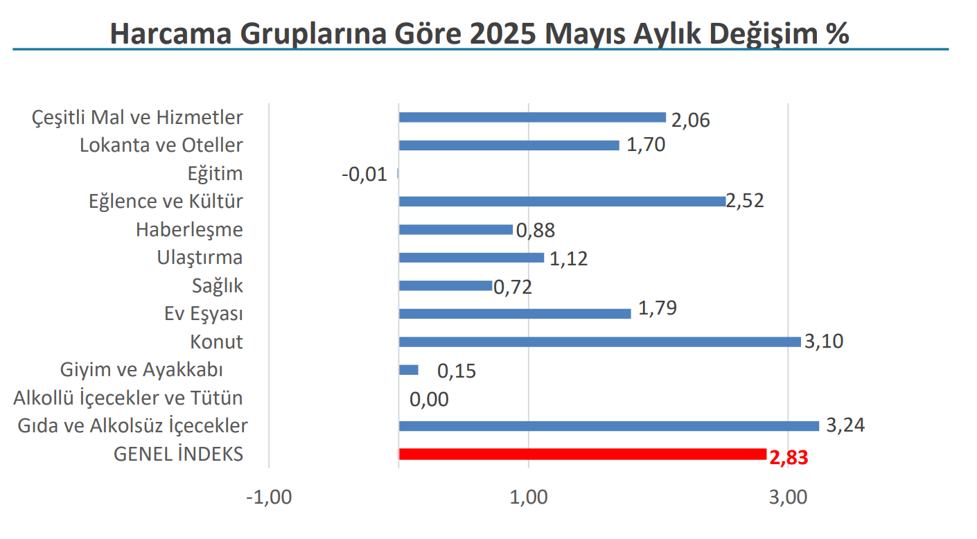 İTO, İstanbul'da perakende fiyatların mayıs ayında aylık yüzde 2,83, yıllık ise yüzde 46,57 artış gösterdiğini açıkladı. İstanbul Ticaret Odası (İTO), mayıs ayı Tüketici Fiyat İndeksi verilerini açıkladı. Buna göre İstanbul’da perakende fiyat hareketlerinin göstergesi olan İTO Tüketici Fiyat İndeksi aylık bazda %2,83 artış kaydetti. Bir önceki yılın aynı ayına göre değişim oranı ise %46,57 olarak kayıtlara geçti. Nisan ayında İstanbul'da perakende fiyatlar aylık yüzde 3,21, yıllık ise yüzde 47,21 artış göstermişti. Eğitim harcamalarında fiyatlar düştü Mayıs ayında İstanbul Tüketici Fiyat İndeksinde bir önceki aya göre Gıda Harcamaları grubunda yüzde 3,24, Konut Harcamaları grubunda yüzde 3,10, Eğlence ve Kültür Harcamaları grubunda yüzde 2,52, Çeşitli Mal ve Hizmetler Harcama grubunda yüzde 2,06, Ev Eşyası Harcamaları grubunda yüzde 1,79, Lokanta ve Oteller Harcama grubunda yüzde 1,70, Ulaştırma Harcamaları grubunda yüzde 1,12, Haberleşme Harcamaları grubunda yüzde 0,88, Sağlık Harcamaları grubunda yüzde 0,72, Giyim ve Ayakkabı Harcamaları grubunda yüzde 0,15 artış izlenirken; Eğitim Harcamaları grubunda yüzde 0,01 azalış izlendi. Alkollü İçecekler ve Tütün harcamaları grubunda ise değişim gerçekleşmedi. Kaynak: İTO TÜİK enflasyonu salı günü açıklayacak Türkiye İstatistik Kurumu (TÜİK), mayıs ayına ilişkin resmi enflasyon verilerini 3 Haziran 2025 Salı günü saat 10.00’da açıklayacak. Verinin açıklanmasının ardından haziran ayında kiralarda uygulanabilecek tavan artış oranı da netlik kazanacak. Son olarak nisan ayı enflasyon verisinin açıklanmasının ardından mayıs ayında kiralarda uygulanabilecek tavan zam oranı yüzde 48,73 olarak belirlenmişti. [news_id:770958]