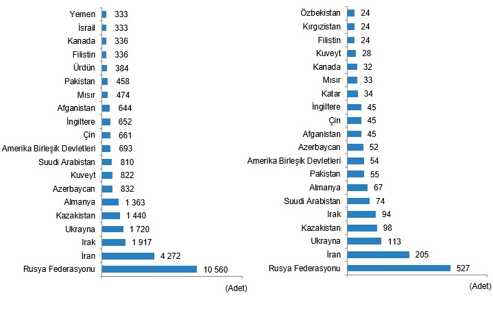 Türkiye genelinde konut satışları 2023 yılında yıllık bazda yüzde 17,5 düşüş kaydetti. Böylelikle konut sektöründe yıllık bazda son 9 yılın en düşük konut satış rakamları görüldü. Türkiye İstatistik Kurumu (TÜİK) 2023 Aralık ayına ilişkin Konut Satış İstatistiklerini açıkladı. Konut satışları 2023 yılında bir önceki yıla göre yüzde 17,5 azalarak 1 milyon 225 bin 926 olarak gerçekleşti. Konut satışlarında İstanbul 198 bin 739 konut satışı ve yüzde 16,2 ile en yüksek paya sahip oldu. Satış sayılarına göre İstanbul'u 114 bin 432 konut satışı ve yüzde 9,3 pay ile Ankara, 65 bin 465 konut satışı ve yüzde 5,3 pay ile İzmir izledi. Konut satış sayısının en az olduğu iller sırasıyla 426 konut ile Ardahan, 501 konut ile Hakkari ve 970 konut ile Tunceli oldu. Kaynak: TÜİK Aralıkta 138 bin 577 konut satıldı Türkiye genelinde konut satışları aralık ayında bir önceki yılın aynı ayına göre yüzde 33,4 azalarak 138 bin 577 oldu. Konut satışlarında İstanbul 23 bin 714 konut satışı ve yüzde 17,1 ile en yüksek paya sahip oldu. Satış sayılarına göre İstanbul'u 11 bin 458 konut satışı ve yüzde 8,3 pay ile Ankara, 7 bin 166 konut satışı ve yüzde 5,2 pay ile İzmir izledi. Konut satışlarının en az olduğu il 65 konut ile Hakkari oldu. Kaynak: TÜİK İpotekli konut satışı 6 bin 42 oldu İpotekli konut satışları aralık ayında bir önceki yılın aynı ayına göre yüzde 72,3 azalış göstererek 6 bin 42 oldu. 2023 yılında gerçekleşen ipotekli konut satışları ise bir önceki yıla göre yüzde 36,6 azalışla 177 bin 748'e geriledi. Toplam konut satışları içinde ipotekli satışların payı aralık ayında yüzde 4,4, 2023 yılında yüzde 14,5 olarak gerçekleşti. Aralık ayındaki ipotekli satışların, bin 831'i; 2023 yılındaki ipotekli satışların ise 53 bin 455'i ilk el satış olarak gerçekleşti. Yabancılar 2023'te 35 bin 5 konut aldı Yabancılara yapılan konut satışları 2023 yılında bir önceki yıla göre yüzde 48,1 azalarak 35 bin 5 oldu. 2023 yılında toplam konut satışları içinde yabancılara yapılan konut satışının payı yüzde 2,9 olarak gerçekleşti. 2023 yılında yabancılara yapılan konut satışlarında ilk sırayı 12 bin 702 konut satışı ile Antalya aldı. Antalya'yı sırasıyla 11 bin 229 konut satışı ile İstanbul, 3 bin 16 konut satışı ile Mersin izledi. Kaynak: TÜİK En çok konutu Ruslar aldı Uyruklara göre 2023 yılında en çok konut satışı Rusya Federasyonu vatandaşlarına yapıldı. Rusya Federasyonu vatandaşları 2023 yılında Türkiye'den 10 bin 560 konut satın aldı. Rusya Federasyonu vatandaşlarını sırasıyla 4 bin 272 konut ile İran vatandaşları ve bin 917 konut ile Irak vatandaşları izledi. Aralık ayında ise Rusya Federasyonu vatandaşları Türkiye'den 527 konut satın aldı. Rusya Federasyonu vatandaşlarını sırasıyla 205 konut ile İran, 113 konut ile Ukrayna vatandaşları izledi. Kaynak: TÜİK [news_id:721410] [news_id:719956]