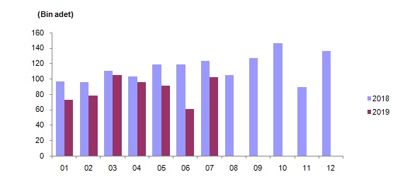 Türkiye genelinde konut satışları 2019 Temmuz ayında bir önceki yılın aynı ayına göre %17,5 oranında azalarak 102.236 oldu. Konut satışlarında, İstanbul 17.276 konut satışı ve %16,9 ile en yüksek paya sahip oldu. Satış sayılarına göre İstanbul'u, 9.491 konut satışı ve %9,3 pay ile Ankara, 5.576 konut satışı ve %5,5 pay ile İzmir izledi. Konut satış sayısının düşük olduğu iller sırasıyla 10 konut ile Ardahan, 15 konut ile Hakkari ve 66 konut ile Şırnak oldu. İpotekli konut satışları 2019 Temmuz ayında 13 064 olarak gerçekleşti Türkiye genelinde ipotekli konut satışları bir önceki yılın aynı ayına göre %57 oranında azalış göstererek 13.064 oldu. Toplam konut satışları içinde ipotekli satışların payı %12,8 olarak gerçekleşti. İpotekli satışlarda İstanbul 2.143 konut satışı ve %16,4 pay ile ilk sırayı aldı. Toplam konut satışları içerisinde ipotekli satış payının en yüksek olduğu il %24,1 ile Artvin oldu. Diğer satış türleri sonucunda 89 172 konut el değiştirdi Diğer konut satışları Türkiye genelinde bir önceki yılın aynı ayına göre %4,6 oranında azalarak 89.172 oldu. Diğer konut satışlarında İstanbul 15.133 konut satışı ve %17 pay ile ilk sıraya yerleşti. İstanbul'daki toplam konut satışları içinde diğer satışların payı %87,6 oldu. Ankara 7.914 diğer konut satışı ile ikinci sırada yer aldı. Ankara'yı 4.778 konut satışı ile İzmir izledi. Diğer konut satışının en az olduğu il 8 konut ile Ardahan oldu.