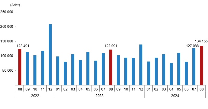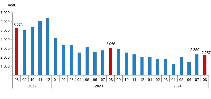 Türkiye genelinde konut satışları ağustos ayında bir önceki yılın aynı ayına göre yüzde 9,9 artarak 134 bin 155 oldu. Böylece konut satışlarında yılın en yüksek rakamına ulaşıldı. Türkiye İstatistik Kurumu (TÜİK) ağustos ayı konut satış istatistiklerini açıkladı. Türkiye genelinde konut satışları Ağustos ayında bir önceki yılın aynı ayına göre %9,9 artarak 134 bin 155 oldu. Konut satış sayısının en fazla olduğu iller sırasıyla 19 bin 467 ile İstanbul, 12 bin 496 ile Ankara ve 7 bin 44 ile İzmir olurken; en az olduğu iller sırasıyla 53 ile Hakkari, 93 ile Ardahan ve 116 ile Bayburt oldu. Kaynak: TÜİK Konut satışları Ocak-Ağustos döneminde bir önceki yılın aynı dönemine göre %1,1 artışla 806 bin 317 olarak gerçekleşti. İpotekli konut satışları 13 bin 574 olarak gerçekleşti Türkiye genelinde ipotekli konut satışları Ağustos ayında bir önceki yılın aynı ayına göre %17,1 azalış göstererek 13 bin 574 oldu. Toplam konut satışları içinde ipotekli satışların payı %10,1 olarak gerçekleşti. Ocak-Ağustos döneminde gerçekleşen ipotekli konut satışları ise bir önceki yılın aynı dönemine göre %49,8 azalışla 76 bin 485 oldu. Ağustos ayındaki ipotekli satışların, 3 bin 55'i; Ocak-Ağustos dönemindeki ipotekli satışların ise 18 bin 17'si ilk el satış olarak gerçekleşti. Türkiye genelinde diğer konut satışları Ağustos ayında bir önceki yılın aynı ayına göre %14,1 artarak 120 bin 581 oldu. Toplam konut satışları içinde diğer satışların payı %89,9 olarak gerçekleşti. Ocak-Ağustos döneminde gerçekleşen diğer konut satışları ise bir önceki yılın aynı dönemine göre %13,2 artışla 729 bin 832 oldu. Kaynak: TÜİK Yabancılara Ağustos ayında 2 bin 257 konut satışı gerçekleşti Yabancılara yapılan konut satışları Ağustos ayında bir önceki yılın aynı ayına göre %26,2 azalarak 2 bin 257 oldu. Ağustos ayında toplam konut satışları içinde yabancılara yapılan konut satışının payı %1,7 olarak gerçekleşti. Yabancılara yapılan konut satış sayısının en fazla olduğu iller sırasıyla 838 ile İstanbul, 696 ile Antalya ve 174 ile Mersin oldu. Kaynak: TÜİK Yabancılara yapılan konut satışları Ocak-Ağustos döneminde ise bir önceki yılın aynı dönemine göre %40,0 azalarak 15 bin 68 oldu. En çok konut satışı Rusya Federasyonu vatandaşlarına yapıldı Ağustos ayında ülke uyruklarına göre en fazla konut satışı sırasıyla 381 ile Rusya Federasyonu, 171 ile İran ve 161 ile Ukrayna vatandaşlarına yapıldı. Kaynak: TÜİK [news_id:745143]