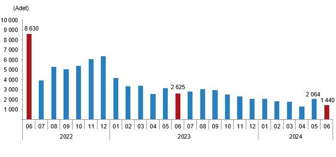 Türkiye genelinde konut satışları haziranda bir önceki yılın aynı ayına göre yüzde 5,2 düşerek 79 bin 313 oldu. Peki, bu dönemde en fazla hangi illerde konut satışı yapıldı? İşte detaylar.. Türkiye İstatistik Kurumu (TÜİK) 2024 Haziran ayına ilişkin Konut Satış İstatistiklerini açıkladı. TÜİK'in açıkladığı verilere göre Türkiye genelinde konut satışları haziran ayında bir önceki yılın aynı ayına göre %5,2 düşerek 79 bin 313 oldu. Kaynak: TÜİK Konut satışları Ocak-Haziran döneminde bir önceki yılın aynı dönemine göre %3,7 azalışla 545 bin 74 olarak gerçekleşti. Konut satışının en fazla ve en az olduğu iller Haziran ayında konut satış sayısının en fazla olduğu iller sırasıyla 13 bin 25 ile İstanbul, 6 bin 866 ile Ankara ve 4 bin 361 ile İzmir olurken; en az olduğu iller sırasıyla 34 ile Ardahan, 40 ile Hakkari, 44 ile Tunceli ve Bayburt oldu. Yabancılara konut satışı %45 azaldı Yabancılara yapılan konut satışları haziran ayında bir önceki yılın aynı ayına göre %45,1 azalarak bin 440 oldu. Haziran ayında toplam konut satışları içinde yabancılara yapılan konut satışının payı %1,8 olarak gerçekleşti. Kaynak: TÜİK Yabancılara yapılan konut satış sayısının en fazla olduğu iller sırasıyla 593 ile Antalya, 478 ile İstanbul ve 116 ile Mersin oldu. Yabancılara yapılan konut satışları Ocak-Haziran döneminde ise bir önceki yılın aynı dönemine göre %45,7 azalarak 10 bin 461 oldu. En çok konut satışı Rus vatandaşlarına yapıldı Haziran ayında ülke uyruklarına göre en fazla konut satışı sırasıyla 332 ile Rusya Federasyonu, 156 ile İran ve 102 ile Ukrayna vatandaşlarına yapıldı. Kaynak: TÜİK