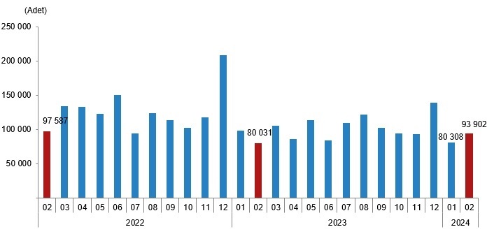 Konut satışları şubatta bir önceki yılın aynı ayına göre yüzde 17,3 artışla 93 bin 902 adet oldu. Bu artış ise son 1,5 yılın en hızlı artışına işaret etti. TÜİK, 2024 yılı Şubat ayı konut satış verilerini açıkladı. Türkiye genelinde konut satışları şubat ayında bir önceki yılın aynı ayına göre yüzde 17,3 artarak 93 bin 902 oldu. Kaynak: TÜİK Konut satışlarında İstanbul 16 bin 344 konut satışı ve yüzde 17,4 ile en yüksek paya sahip oldu. Satış sayılarına göre İstanbul'u 8 bin 300 konut satışı ve yüzde 8,8 pay ile Ankara, 5 bin 168 konut satışı ve yüzde 5,5 pay ile İzmir izledi. Konut satış sayısının en az olduğu iller sırasıyla 18 konut ile Ardahan, 45 konut ile Tunceli ve 51 konut ile Bayburt oldu. İpotekli konut satışlarında sert düşüş Türkiye genelinde ipotekli konut satışları şubat ayında bir önceki yılın aynı ayına göre %49,1 azalış göstererek 8 bin 827 oldu. Toplam konut satışları içinde ipotekli satışların payı %9,4 olarak gerçekleşti. Ocak-Şubat döneminde gerçekleşen ipotekli konut satışları ise bir önceki yılın aynı dönemine göre %56,1 azalışla 14 bin 742 oldu. Şubat ayındaki ipotekli satışların 2 bin 60'ı, Ocak-Şubat dönemindeki ipotekli satışların ise 3 bin 464'ü ilk el satış olarak gerçekleşti. Yabancılara konut satışı azaldı Yabancılara yapılan konut satışları şubat ayında bir önceki yılın aynı ayına göre %44,9 azalarak bin 846 oldu. Şubat ayında toplam konut satışları içinde yabancılara yapılan konut satışının payı %2,0 oldu. Yabancılara yapılan konut satışlarında ilk sırayı 691 konut satışı ile İstanbul aldı. İstanbul'u sırasıyla 659 konut satışı ile Antalya ve 151 konut satışı ile Mersin izledi. Kaynak: TÜİK Yabancılara yapılan konut satışları Ocak-Şubat döneminde ise bir önceki yılın aynı dönemine göre %48,0 azalarak 3 bin 907 oldu. En çok Rusya vatandaşlarına satış yapıldı Şubat ayında Rusya Federasyonu vatandaşları Türkiye'den 395 konut satın aldı. Rusya Federasyonu vatandaşlarını sırasıyla 200 konut ile İran, 112 konut ile Irak ve 105 konut ile Ukrayna vatandaşları izledi. Kaynak: TÜİK