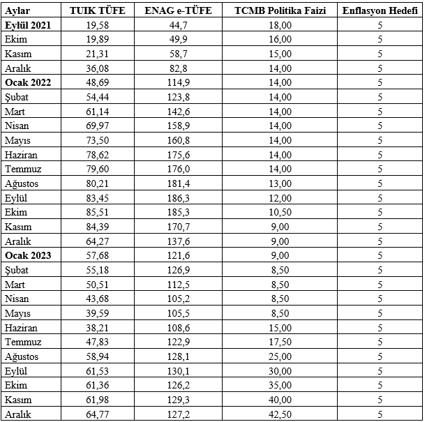 İktisatçı Mahfi Eğilmez, TÜİK ve ENAG’ın yayınladığı enflasyon verilerini karşılaştırarak, “İster TÜİK enflasyonunu ister ENAG enflasyonunu doğru kabul edelim bu faiz oranıyla yüzde 5’lik enflasyon hedefine ulaşmamız, deflasyona girilmediği sürece, hiçbir zaman mümkün olamaz.” dedi. Mahfi Eğilmez yazısında TÜİK ve ENAG’ın açıkladığı enflasyon verilerine ilişkin ekonomi notlarını paylaşarak enflasyonun nasıl düşürülebileceğini yazdı. Mahfi Eğilmez’in konuyla ilgili yazısı ise şöyle oldu: TÜİK, 2023 yılı enflasyonunu (TÜFE) yüzde 64,77, ENAG ise e-TÜFE’yi yüzde 127,2 olarak açıkladı. Ara sıra kuşkuya kapıldığım dönemler olsa da bugüne kadar analizlerimde hep TÜİK TÜFE’yi enflasyon verisi olarak kullandım. 2022 başlarından itibaren enflasyon verileri hakkındaki kuşkularım artmaya başladı. Çünkü yaşamda karşılaştığımız fiyatlar, açıklanan enflasyonun çok üzerinde artışlar gösteriyordu. Yine de TÜİK TÜFE’yi veri kabul etmeye devam ettim. Ama zihnimdeki soru işaretleri sürekli artıyordu. O aralar Prof. Dr. Veysel Ulusoy başkanlığında bir grup bilim insanının oluşturduğu ENAG (Enflasyon Araştırma Grubu) adlı bir grup, TÜFE’yi, günlük olarak internet ortamında derlenen mal ve hizmet fiyatlarıyla ölçmeye ve elde ettikleri sonuçları kamuoyuyla paylaşmaya başladı. ENAG, bu ölçmeyi yaparken TÜİK’in kullandığı mal ve hizmet sepetini ve aynı ağırlıkları kullanıyordu. TÜİK ile ENAG’ın ulaştığı sonuçlar arasında kabaca bir kat fark vardı. Bu verileri aşağıdaki tabloda sunuyorum. Kaynak: Mahfi Eğilmez - Kendime Yazılar Tabloda TÜİK ve ENAG’ın enflasyon verilerine ek olarak Merkez Bankası politika faizi ve Merkez Bankası’nın uyguladığı enflasyon hedeflemesi politikası için esas aldığı (ulaşmaya uğraştığı) enflasyon hedefi var. Görüleceği gibi tablodaki bütün veriler değişiyor ama enflasyon hedefi değişmiyor. Merkez Bankası’nın yılsonu enflasyon tahminleri de değişiyor ama hedef hep aynı. Öte yandan yine tablodan görüleceği gibi TÜİK ve ENAG’ın enflasyon bulguları arasında büyük fark var. Benim piyasada karşılaştığım enflasyon, ENAG’ın açıkladığı enflasyon verisine çok yakın. Şimdi bu verileri bir grafiğe dökelim: Kaynak: Mahfi Eğilmez - Kendime Yazılar İster TÜİK enflasyonunu ister ENAG enflasyonunu doğru kabul edelim bu faiz oranıyla yüzde 5’lik enflasyon hedefine ulaşmamız, deflasyona girilmediği sürece, hiçbir zaman mümkün olamaz. Grafikte Merkez Bankası politika faizinin TÜİK enflasyonuna yakınlaşmaya başladığı görülüyor ama arada hala 22,5 puan yani mevcut faizin yarısından fazla fark var. ENAG enflasyonunu böyle bir karşılaştırmaya sokarsak fark faizin iki katına çıkıyor. Merkez Bankası 2023 ortasında faizi artırmaya başlamadan önce söylediklerimizi bir kez daha hatırlatalım: Enflasyonla mücadele edilecekse faizi artırmak gerekir. Mevcut faizle (o zaman Merkez Bankası faizi yüzde 8,5 idi) enflasyon oranı (o zaman yüzde 38 idi) arasında ciddi fark olduğu için faizi aniden o düzeye çıkarmak yerine yavaş yavaş artırmak gerekir. Bununla birlikte faizin yanlış belirlenmesi tek başına ekonomiyi çökertecek etki yaratsa da doğru belirlenmeye başlaması tek başına ekonomiyi kurtaramaz. O nedenle faizin yanına hukukun üstünlüğüyle başlamak üzere yapısal reformları koymak gerekir. Bir de bugüne kadar yapılanları hatırlayalım: Merkez Bankası, önerdiğimizi gibi faizi yavaş yavaş artırmaya başladı ve devam etti. Merkez Bankası faiz politikasını destekleyecek bazı adımlar attı (zorunlu karşılık düzenlemeleri, likidite yönetimi, KKM’nin yavaş yavaş tasfiyeye sokulması.) Buna karşılık yapısal reformlar konusunda hiçbir adım atılmadığı gibi tam tersine yaklaşımlar sergilenmeye devam edildi. Bu son dönemde maliye politikası para politikasını destekleyecek biçimde kullanılmadı. Tam tersine büyümeyi kollamak amacıyla genişlemeci bir maliye politikası izlendi. Bütün bunların sonucu olarak uygulanan para politikasından bugüne kadar anlamlı bir sonuç alınamadı. Her şey yine yılın ortasından itibaren 3 – 4 ay yaşanacak baz etkisiyle enflasyonun düşüşüne kaldı. Enflasyonun düşürülmesi için neler yapılması gerekiyor? Bunları da aylardır yazdık ama derli toplu olarak bir daha yazalım: Her şeyden önce gerçek enflasyonun açıklanması gerekiyor. Ki Merkez Bankası faiz başta olmak üzere para politikası araçlarını buna göre ayarlasın ve hedefi kovalayabilsin. Faizin yavaş artırılmaya devam edilmesi şart. Çünkü aniden yüzde 100’ler düzeyine çıkarılırsa ekonominin önemli bir kısmı elimizde kalabilir. Bir tek gün bile geçirilmeden yapısal reformlara başlanması gerekiyor. Ki ülkeye legal yollardan döviz girişi başlayabilsin. Tabii sorunlar kangren haline geldiği için bu dediklerimi yapmak kolay değil. Çünkü hükümet, örneğin enflasyonun yüzde 100’ün üzerinde olduğunu kabul ettiği anda memura, emekliye buna uygun ücret artışlarını vermesi gerekecek. Öte yandan hukukun üstünlüğü ilkesini kabul edip o alanda yapısal reforma girişse bugüne kadar uygulatmadığı bazı kararları uygulatması gerekecek ki bunların da açıklanması çok kolay değil. Özetle söylemek gerekirse Türkiye yapısal reform yapamayacağı için enflasyonun baz etkisiyle yaşayacağı geçici düşüşler dışında kalıcı olarak düşme olasılığı da görünmüyor. [news_id:719882]