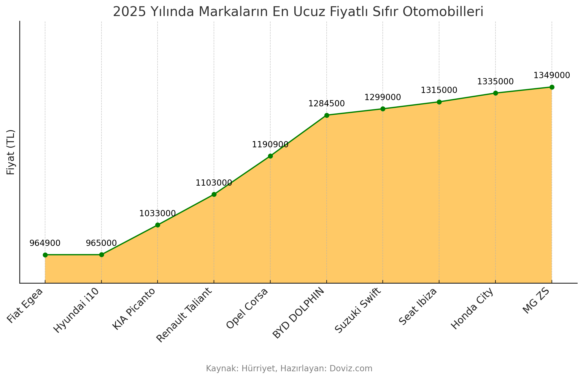 Enflasyonun yıl boyunca yapışkan kalabileceğine yönelik endişeler artarken vatandaşlar da yılın ilk döneminde ihtiyaçlarına ve bütçelerine uygun araç aramaya devam ediyor. İşte, 2025 yılının ilk ayları itibarıyla markaların Türkiye’de satışa sunduğu en düşük fiyatlı 10 sıfır otomobil.. 2024 yılını rekor satış hacmine ulaşarak tamamlayan otomobil pazarı 2025 yılına daralmayla başladı. Buna göre Türkiye otomobil ve hafif ticari araç pazarında 2025 yılı Ocak ayında bir önceki yılın aynı ayına göre satışlar %13,9 oranında düşerek 68.654 oldu. Bu dönemde otomobil satışları 2025 yılı Ocak ayında geçen yıla göre %12,6 oranında azalarak 55.944, hafif ticari araç satışları ise %18,8 azalarak 12.710 seviyesine geriledi. [news_id:761228] Uzmanlar ise otomobil pazarındaki daralmanın arkasındaki en önemli sebeplerin sıfır otomobil fiyatlarının yaklaşık olarak 1 milyon TL’den başlaması ve sıkı para politikası koşullarının etkisiyle vatandaşların kredi kullanmaya daha az istekli olması olduğunu söyledi. Vatandaşın alımlarını azalttığı sıfır otomobil pazarında markaların en uygun 10 aracı ise şöyle listelendi: Buna göre uzun süredir Türkiye’nin en uygun fiyatlı araçlarından biri olan Egea, yeni yılda da bu ünvanını korumayı başardı. Hyundai i10 modeliyle Egea’nın hemen üzerinde yer alırken bu iki araç modelini sırasıyla KIA Picanto, Renault Taliant ve Opel Corsa takip etti. [news_id:762053] Sıfır araç alırken dikkat edilmesi gerekenler Uzmanlar ise sıfır araç alırken dikkat edilmesi gereken bazı unsurlar olduğunu bildirdi. Buna göre yakıt tüketimi ve motor hacmi gibi teknik detayların dikkate alınması gerektiğini aktaran uzmanlar, kullanım amacına uygun modelin seçilmesini önerdi (şehir içi, uzun yol vb.). Vergi ve sigorta maliyetlerinin de göz önünde bulundurulması gereken önemli bir faktör olduğunu aktaran uzmanlar araç almadan önce yetkili bayilerden indirim istenilmesini tavsiye etti. [news_id:703341]