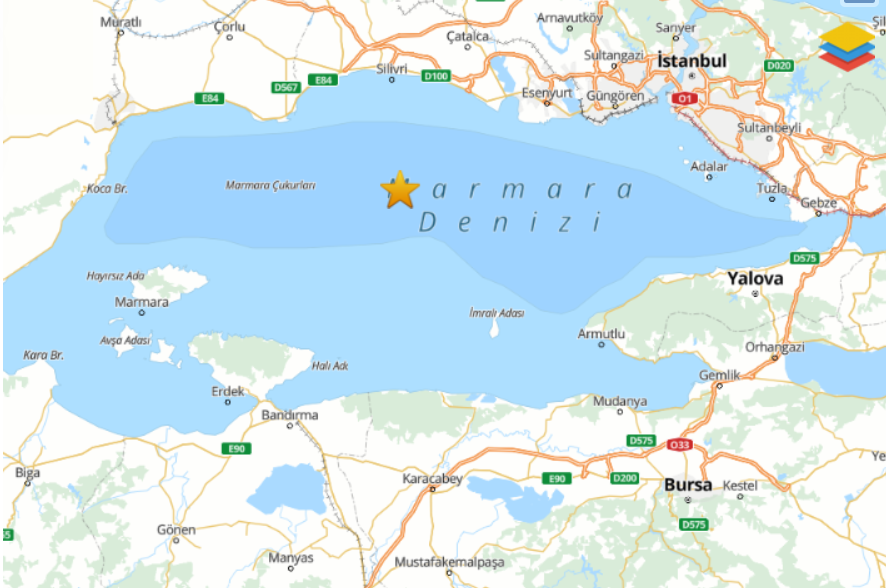 AFAD verilerine göre Marmara Denizi'nde saat 13.33’te 3,6 büyüklüğünde bir deprem meydana geldi. Afet ve Acil Durum Yönetimi Başkanlığının (AFAD) internet sitesinde yer alan bilgiye göre saat 13.33'te deprem oldu. Yerin 9,9 km altında gerçekleşen depremin büyüklüğü 3,6 olarak açıklandı. Depremin merkez üssünün ise Marmara Denizi olduğu bildirildi. Silivri (İstanbul) açıklarında gerçekleşen deprem, çevre illerde de hissedildi.