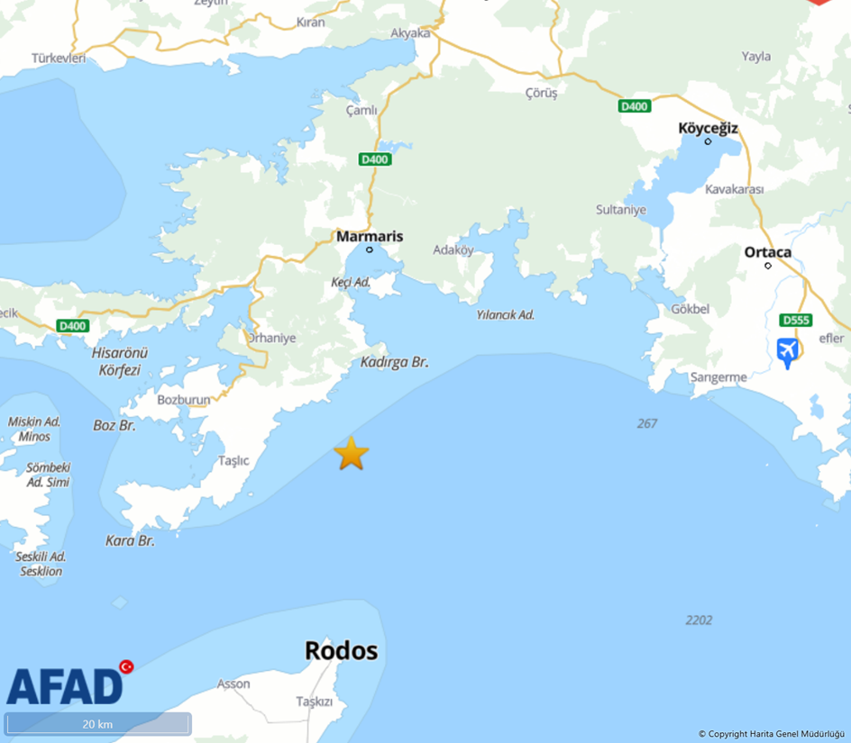 Marmaris açıklarında saat 02.17'de 5,8 büyüklüğünde deprem meydana geldi. Afet ve Acil Durum Yönetimi Başkanlığının (AFAD) internet sitesinde yer alan bilgiye göre saat 02.17’de Marmaris açıklarında sarsıntı kaydedildi. Yerin 67,91 kilometre altında gerçekleşen depremin büyüklüğü 5,8 olarak açıklandı. Kaynak: AFAD Bakan Yerlikaya'dan açıklama İçişleri Bakanı Ali Yerlikaya, sosyal medya hesabından yaptığı paylaşımda, Marmaris açıklarında meydana gelen 5,8 büyüklüğündeki depremin, çevre illerden de hissedildiğini belirtti. Yerlikaya, depremle ilgili Muğla Valiliği koordinasyonunda, Afet ve Acil Durum Yönetimi Başkanlığının (AFAD) ve ilgili kurumların tüm ekiplerinin saha taramalarına devam ettiğini vurgulayarak, "İlk belirlemelere göre şehir genelinde yerleşim bulunan binalarda bir yıkım söz konusu değildir. Depremde Fethiye'de panikatak nedeniyle 14 yaşındaki Afranur Günlü isimli kızımız hastaneye kaldırılmış ancak tüm müdahalelere rağmen maalesef hayatını kaybetmiştir." ifadelerini kullandı. Muğla ve ilçelerinde panik ile yüksekten atlama sonucu yaralanan 69 vatandaştan 14'ünün tedavilerinin mahallinde yapıldığını aktaran Yerlikaya, şunları kaydetti: "8 kişinin tedavileri ayakta yapılarak taburcu edilmiştir. 46 vatandaşımızın tetkik ve tedavileri acil serviste devam etmektedir. Hayatını kaybeden Afranur evladımıza Allah'tan rahmet, yakınlarına başsağlığı diliyorum. Depremden etkilenen vatandaşlarımıza geçmiş olsun dileklerimi sunuyorum. Allah ülkemizi ve milletimizi afetlerden korusun."