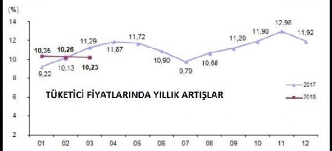 Tüketici fiyatları geçtiğimiz Mart ayında %0,99 arttı, yıllık enflasyon %10,23 ile çift hanede seyretti. Üretici fiyatları ise Mart ayında %1,54 arttı, yıllık üretici enflasyonu %14,28 oldu. Yılın ilk çeyreğinde enflasyon % 2,77 yıllık hedef %5,0 olarak açıklandı. 12 aylık ortalamalara göre tüketici enflasyonu % 11,14 Yılın ilk çeyreğinde üretici enflasyonu %5,29 12 aylık ortalamalara göre üretici enflasyonu %5,35 Tüketici enflasyonunda aylık en yüksek artış %2,03 ile gıda ve alkolsüz içecekler grubunda yaşandı.