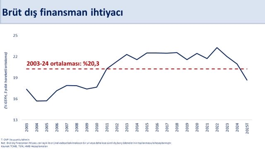 Ağustos ayında tarihin en yüksek aylık cari fazlasının verildiğini bildiren Hazine ve Maliye Bakanı Mehmet Şimşek, azalan döviz ihtiyacı, artan dış finansmana erişim ve yüksek rezervler sayesinde makro finansal dayanıklılığın güçlendiğini söyledi. Türkiye Cumhuriyet Merkez Bankası (TCMB) ağustos ayı ödemeler dengesi verilerini açıkladı. Açıklanan verilerin ardından Hazine ve Maliye Bakanı Mehmet Şimşek, Türkiye'nin dış finansman ihtiyacının azaldığının altını çizerek şunları aktardı: “Ağustosta 5,5 milyar dolar ile tarihimizin en yüksek aylık cari fazlasını verdik. Böylece yıllık cari açık 18,3 milyar dolara gerilerken 2023 yılı Mayıs ayına göre iyileşme 37,6 milyar dolar oldu. Cari açıktaki bu iyileşme ülkemizin dış finansman ihtiyacını azaltıyor. Nitekim 2023 yılı Haziran ayında milli gelire oranla yüzde 23 olan brüt dış finansman ihtiyacının, 2025’te yaklaşık yüzde 17’ye gerileyeceğini öngörüyoruz. Azalan döviz ihtiyacı, artan dış finansmana erişim ve yüksek rezervlerimiz sayesinde makro finansal dayanıklılığımız güçleniyor.” [news_id:788021]