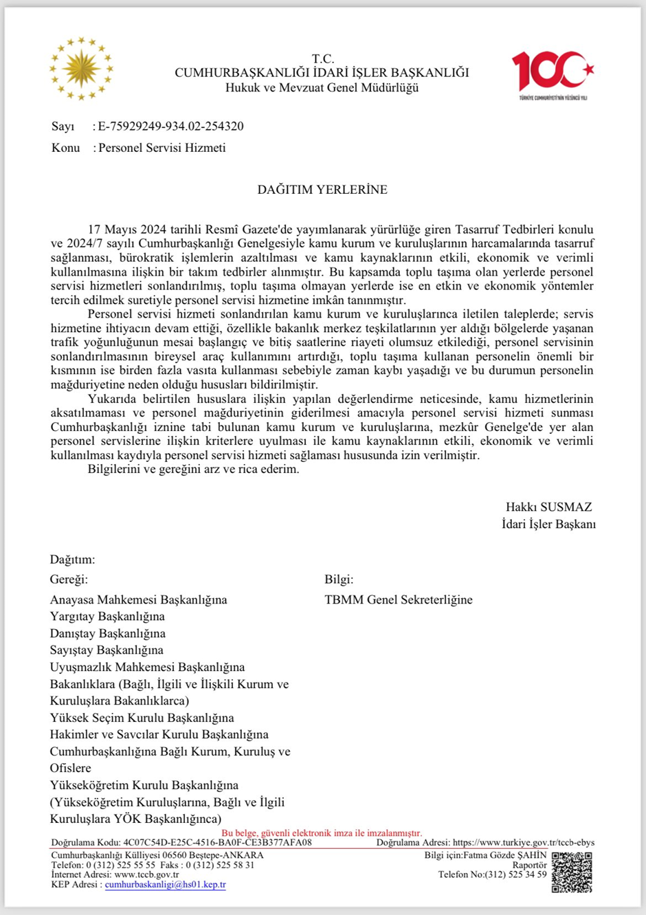 Memur-Sen Başkanı Ali Yalçın sosyal medya hesabından yaptığı açıklamada bakanlıklarla yaptıkları görüşmelerin olumlu sonuçlandığını ve kamuda servis hizmetinin devam edeceğini duyurdu. Memur-Sen Başkanı Ali Yalçın, sosyal medya hesabından yaptığı açıklama ile yeni gelişmeyi duyurdu. Yalçın, paylaşımında şu ifadelere yer verdi: "Servis Hizmeti’ne Devam Edilecek Memur-Sen olarak 3. Dönem Toplu Sözleşme’den itibaren elde ettiğimiz Servis Hizmeti kazanımımız, hukuksuz bir şekilde Tasarruf Tedbirleriyle engellenmiş ve bazı kamu kurum ve kuruluşunda uygulanmayarak personel mağdur edilmişti. Eylemlerimiz, Çalışma ve Sosyal Güvenlik Bakanlığı ile görüşmelerimiz ve Hazine ve Maliye Bakanlığı ile yaptığımız istişarelerimiz sonuç verdi. Cumhurbaşkanlığı İdari İşler Başkanlığı Hukuk ve Mevzuat Genel Müdürlüğü tarafından kamu kurum ve kuruluşlarına gönderilen yazıda servis hizmetine devam edileceği belirtilmiştir." Kaynak: Ali Yalçın - X [news_id:733063]