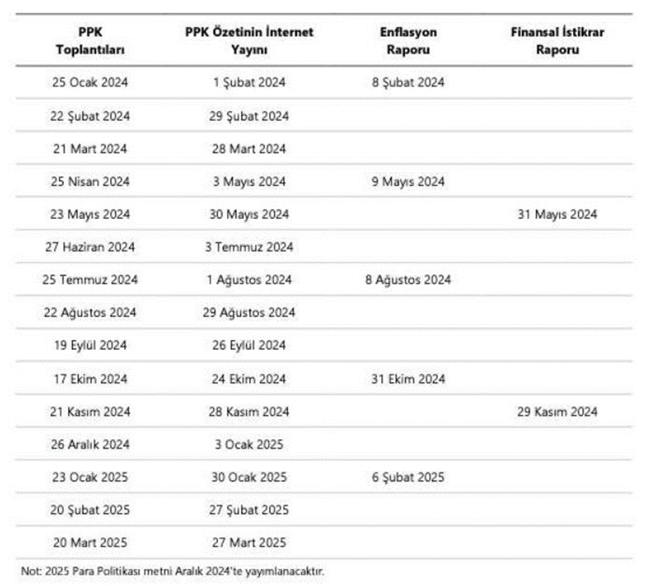 Türkiye Cumhuriyet Merkez Bankası, 2024 yılında para politikasında izleyeceği yol haritasına ilişkin bir metin yayımladı. Türkiye Cumhuriyet Merkez Bankası (TCMB) 2024 yılında sadeleşme sürecinin devam edeceğini, parasal sıkılıkla birlikte miktarsal sıkılaşmanın da sterilizasyon araçlarının çeşitliliği artırılarak sürdürüleceğini açıkladı. TCMB, '2024 Para Politikası' metninde ana başlıklar altında önümüzdeki yıl için uygulanacak para politikasına yönelik temel unsurları ise şöyle aktardı: "Yabancı para yükümlülükler üzerinden menkul kıymet tesisinin kademeli olarak azaltılmasına devam edilecek. KKM hesaplarından Türk lirası hesaplara geçişin güçlenmesiyle bu alandaki düzenlemelerde de sadeleşme yapılacak. KKM’ye yönelik talebin azalmaya devam edeceği ve Türk lirası varlıklara olan talebin güçleneceği öngörülmektedir. Türk lirası mevduatın önceliklendirilmesine yönelik atılacak adımlarla bankacılık sisteminde Türk lirası mevduatın payının yüzde 50’ye yükselmesi ve KKM bakiyesindeki gerilemenin devam etmesi hedeflenmektedir. 2024 yılında da piyasada dönemsel likidite fazlası oluşabilecektir. Parasal aktarım mekanizmasının etkinliğini korumak ve parasal sıkılaştırmayı desteklemek amacıyla, kullanılan sterilizasyon araçlarının çeşitliliği artırılarak söz konusu likidite fazlası sterilize edilecek ve miktarsal sıkılaştırma süreci devam edecektir. TCMB APİ portföy büyüklüğü, ilave alım seçeneği saklı kalmak kaydıyla, 2024 yılı için nominal 200 milyar TL olarak belirlenmiştir. 2024 yılında, vadesi gelecek nominal 28,2 milyar TL’lik kısım dahil olmak üzere söz konusu hedefe ulaşmak için doğrudan alım işlemleri gerçekleştirilecektir." 12 toplantı olacak Öte yandan TCMB'nin para politikası yol haritasında 2024'te 12 Para Politikası Kurulu toplantısı gerçekleşeceği ifade edildi. Kaynak: TCMB Toplantılar öncesinde yedi günlük sessiz döneme vurgu yapılarak, bu dönemde dış iletişim olmayacağının altı çizildi. Metne göre TCMB’nin faaliyetleri, para politikası uygulamaları ve döneme özgü gelişmeler hakkında Başkan tarafından Türkiye Büyük Millet Meclisi Plan ve Bütçe Komisyonu'nda yapılan sunumlar sürdürülecek. Başkan, Başkan Yardımcıları ve teknik içerikli konularda görevlendirilen TCMB mensupları tarafından diğer platformlarda yapılan sunum ve konuşmalar iletişim politikasının bileşeni olmaya devam edecek. [news_id:719564]