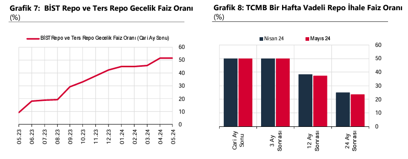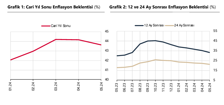 Türkiye Cumhuriyet Merkez Bankası Piyasa Katılımcıları Anketi'ne göre yıl sonu dolar kuru tahmini 38,78 lira, enflasyon beklentisi ise yüzde 43,64 oldu. Merkez Bankası (TCMB), mayıs ayı Piyasa Katılımcıları Anketi'nin sonuçlarını yayımladı. Buna göre katılımcıların 2024 yıl sonu dolar/TL beklentisi 38,78 TL olurken, 12 ay sonrası döviz kuru beklentisi ise aynı anket döneminde 41,80 TL olarak belirlendi. Bir önceki dönemde beklentiler sırasıyla 40,01 ve 42,47 TL olmuştu. Kaynak: TCMB Piyasa Katılımcıları Anketi Faiz beklentisi Katılımcıların BİST Repo ve Ters-Repo Pazarı’nda oluşan cari ay sonu gecelik faiz oranı beklentisi de yılın beşinci anketinde yüzde 51,51 oldu. TCMB bir hafta vadeli repo ihale faiz oranı cari ay sonu beklentisi de aynı anket döneminde yüzde 50,00 olarak belirlendi. Kaynak: TCMB Piyasa Katılımcıları Anketi Enflasyon beklentisi Katılımcıların cari yıl sonu tüketici enflasyonu (TÜFE) beklentisi de bu anket döneminde yüzde 43,64 seviyesinde ölçüldü. Bir önceki ankette bu beklenti yüzde 44,16 olarak belirlenmişti. Öte yandan 12 ay sonrası TÜFE beklentisi yüzde 33,21, 24 ay sonrası TÜFE beklentisi ise sırasıyla yüzde 22,05 ve 21,33 olarak belirlendi. Kaynak: TCMB Piyasa Katılımcıları Anketi TCMB ise yılın 2. Enflasyon Raporu toplantısında 2024 yıl sonu enflasyon tahminini 2 puan artırarak yüzde 38’e çıkarmış, 2025 ve 2026 yıl sonu tahminlerini de yüzde 14 ve yüzde 9 seviyesinde sabit bırakmıştı. [news_id:732689]
