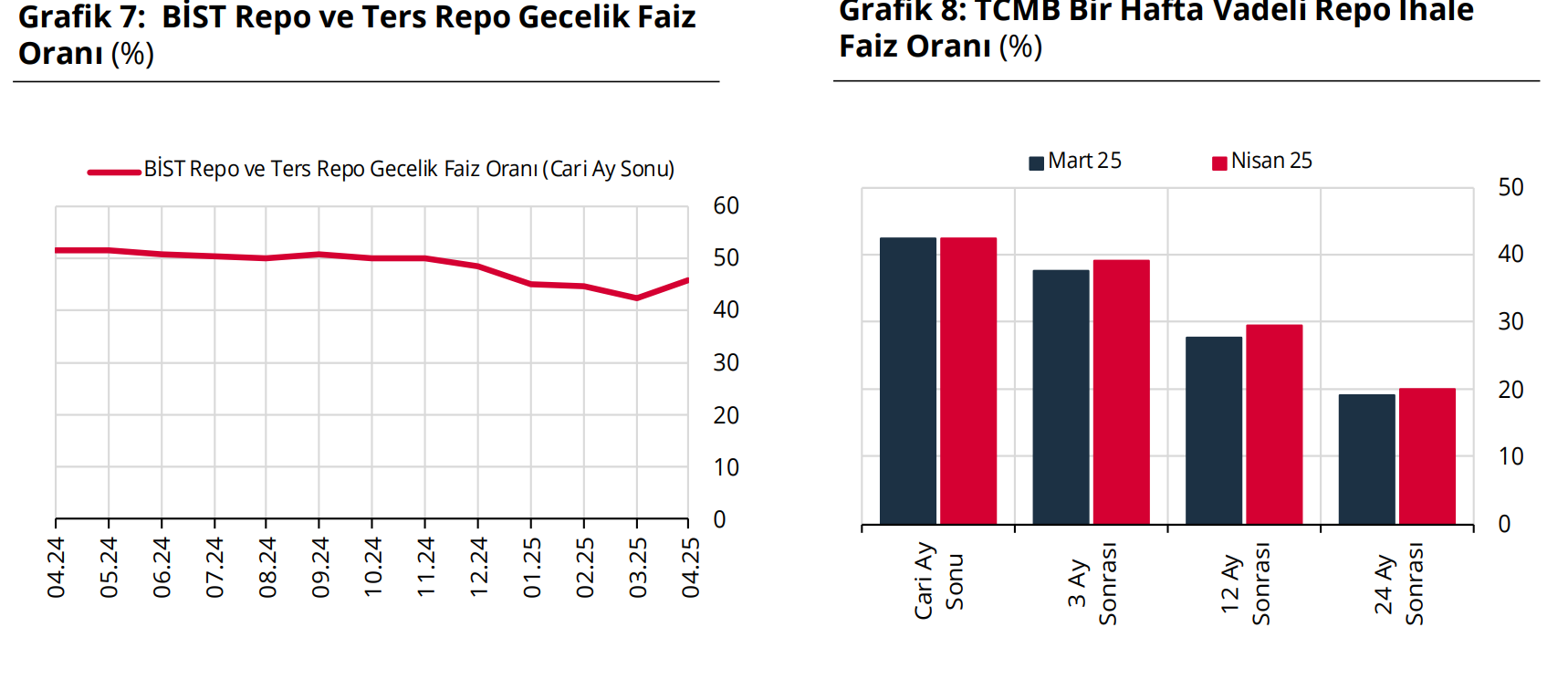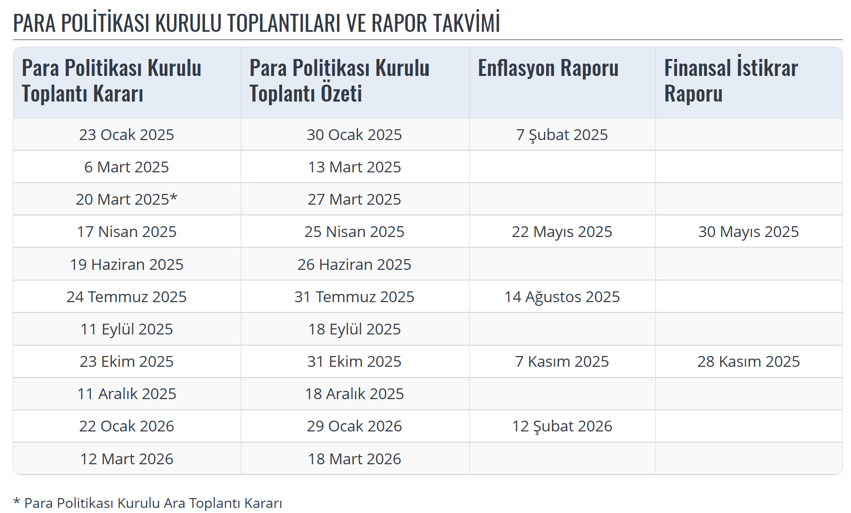 Merkez Bankası, Fatih Karahan başkanlığındaki nisan ayı PPK toplantısının ardından faiz kararını açıkladı. Türkiye Cumhuriyet Merkez Bankası (TCMB), politika faizini 350 baz puan artışla yüzde 46 seviyesine çıkardığını duyurdu. Kurul ayrıca gecelik vadede borç verme faiz oranını yüzde 46’dan yüzde 49’a, gecelik vadede borçlanma faiz oranını ise yüzde 41’den yüzde 44,5’e yükseltti. Piyasanın karara ilişkin beklentisi ise politika faizinin sabit bırakılacağı yönündeydi. Bu kapsamda TCMB’ye ilişkin tahminini açıklayan 14 yabancı kurumdan 12’si faizlerde bir değişim beklemediğini bildirmişti. Sadece Goldman Sachs ve Jefferies, artan baskılara dikkati çekerek faiz artışı gerçekleşebileceğini öngörmüştü. Yerli kurumların beklentisi de bir hafta vadeli repo faizi olan politika faizinin sabit bırakılacağı yönündeydi. Buna göre TCMB’nin Piyasa Katılımcıları Anketi’nde nisan ayı toplantısında politika faizinin sabit bırakılacağı tahmin edilmişti. 3 ay sonrası için beklenti yüzde 39,24, 12 ve 24 ay sonrası için beklentiler ise sırasıyla yüzde 29,37 ve yüzde 20,25 olarak belirlenmişti. Kaynak: TCMB - Piyasa Katılımcıları Anketi TCMB’nin faiz patikası hakkında daha fazla ipucu görmeyi bekleyen yatırımcılar ise 25 Nisan tarihinde açıklanacak PPK toplantı özetindeki değişimi izleyecek. Buna göre bir önceki PPK metninde yer alan şahin mesajların korunup korunmadığı piyasaların yakın takibinde olacak. Yatırımcıların takip edeceği Merkez Bankası’nın gelecek döneme ilişkin toplantı tarihleri ise şöyle olacak: Kaynak: TCMB [news_id:769107] [news_id:769077]