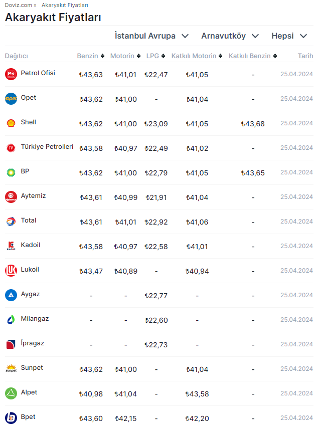 Motorin fiyatlarında gece saatlerinden itibaren geçerli olmak üzere indirime gidildi. İşte motorine gelen indirim miktarı.. Dolar kuru ve brent petroldeki değişimler akaryakıt fiyatlarında da kendini gösteriyor. Buna göre, dolar kurunun bugün açıklanacak faiz kararı öncesi hafta boyunca temkinli bir seyir izlemesi ve brent petrolün geçtiğimiz hafta ulaştığı 90 dolar seviyelerinin altına gerilemesi sonrasında 25 Nisan gece saatleri itibarıyla motorine 1,15 liralık indirim geldi. Motorine yapılan bu indirim pompa fiyatlarına da yansıtıldı. Gece yarısı motorine gelen indirim sonrasında güncel pompa fiyatlarına göre; İstanbul'da motorin litresi 41,01 liradan, Benzinin litresi 43,63 liradan, LPG'nin litresi de 22,47 liradan satılmaya başlandı. Motorine gelen indirimin ardından İstanbul Avrupa yakasında dağıtım şirketi bazlı akaryakıt fiyatları ise şöyle listelendi: Kaynak: Doviz.com - Akaryakıt Fiyatları Akaryakıt fiyatları nasıl hesaplanıyor? Türkiye'de benzin ve motorin fiyatları hesaplanırken; Gümrüksüz rafineri fiyatına ÖTV ve EPDK payının eklenmesiyle KDV hariç Rafineri satış fiyatı bulunuyor. Gümrüksüz Rafineri Fiyatı hesaplanırken ise, Akdeniz-İtalyan piyasasında yayınlanan günlük CIF Akdeniz ürün fiyatları ve günlük dolar kuru takip edilerek, belli bir fiyat değişim farkında gümrüksüz rafineri tavan satış fiyatı elde ediliyor. [news_id:731101]