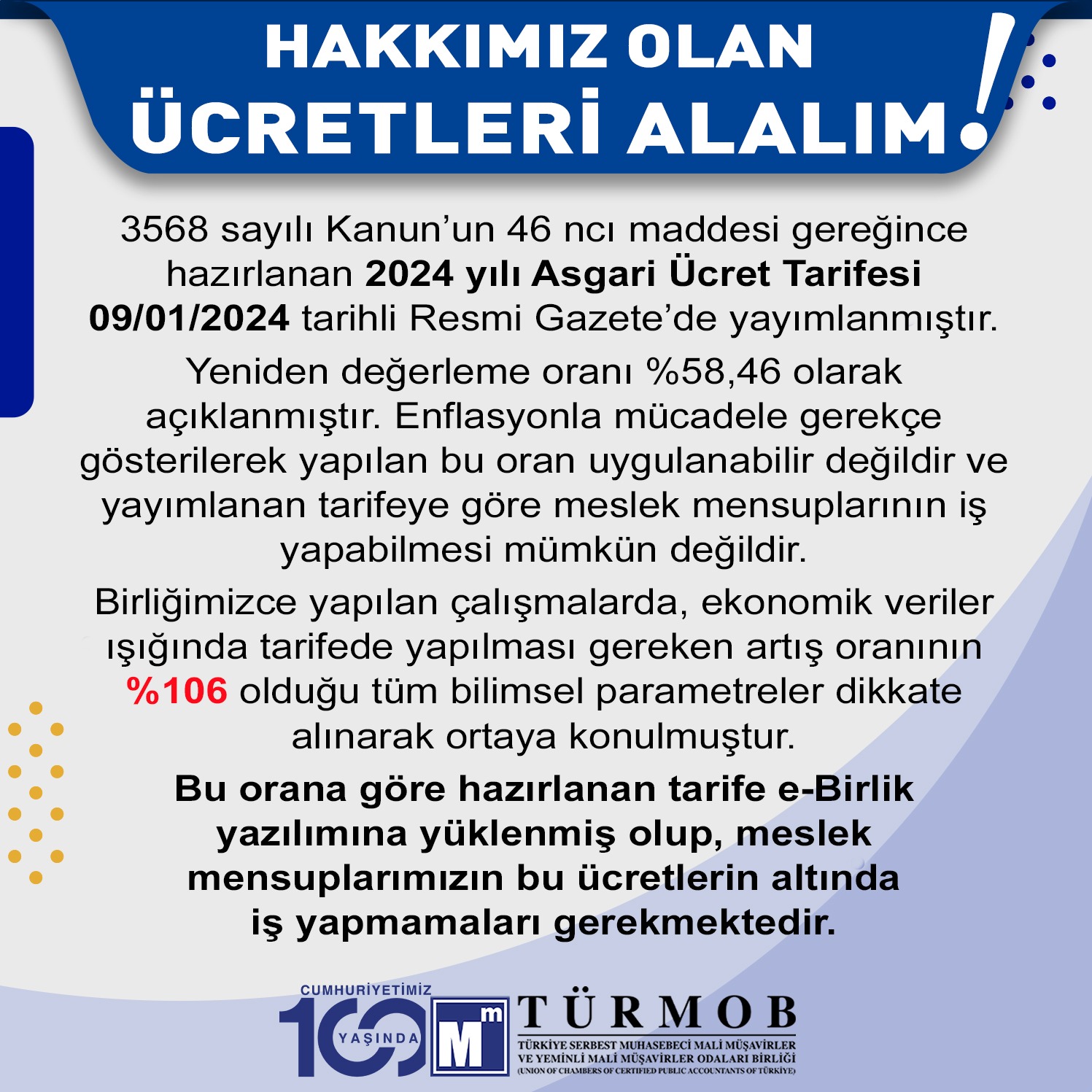 Muhasebeciler, Hazine ve Maliye Bakanlığının belirlediği yeni ücretleri yetersiz bulup kendi zam oranını açıkladı. Ayrıca belirlenen zammın altında iş yapılmaması konusunda da üyelere uyarıda bulunuldu. Hazine ve Maliye Bakanlığı, muhasebeci ve mali müşavirlerin müşterilerinden bu yıl alacağı asgari ücret tarifesine yüzde 58,46 oranında zam yaptı. Yeni zam oranı, Gelir İdaresi Başkanlığının Resmi Gazetede yayımladığı tebliğle bugün yürürlüğe girdi. [news_id:720269] Ancak Türkiye Muhasebeci ve Mali Müşavirler Odaları Birliği (TÜRMOB) yüzde 58,46’lık zammın yaşanan gerçek enflasyon karşısında düşük kaldığını, bu zamla iş yapılamayacağını belirterek kendi zam oranını yüzde 106 olarak açıkladı. Bakanlıkça yayımlanan tarifeye göre meslek mensuplarının iş yapabilmesinin mümkün olmadığını belirten TÜRMOB, “Tarifede yapılması gereken artış oranının yüzde 106 olduğu tüm bilimsel parametreler dikkate alınarak ortaya konulmuştur. Bu orana göre hazırlanan tarife taslağı E-Birlik Yazılımına yüklenmiş olup, meslek mensuplarımızın bu önerilen ücretlerin altında iş yapmamaları gerekmektedir.” açıklamasını yaptı. Kaynak: TÜRMOB - X