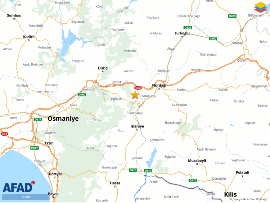 AFAD verilerine göre Osmaniye’de 4,4 büyüklüğünde deprem meydana geldi. Afet ve Acil Durum Yönetimi Başkanlığının (AFAD) internet sitesinde yer alan bilgiye göre saat 12.09'da deprem oldu. Yerin 8,8 km altında gerçekleşen depremin büyüklüğü 4,4 olarak açıklandı. Depremin merkez üssünün ise Osmaniye olduğu bildirildi. Bahçe (Osmaniye) yakınlarında gerçekleşen deprem, çevre illerde de hissedildi.