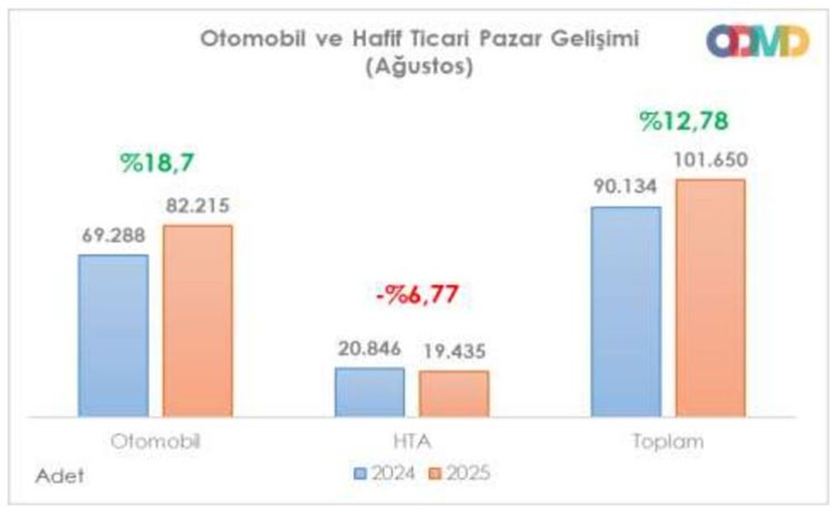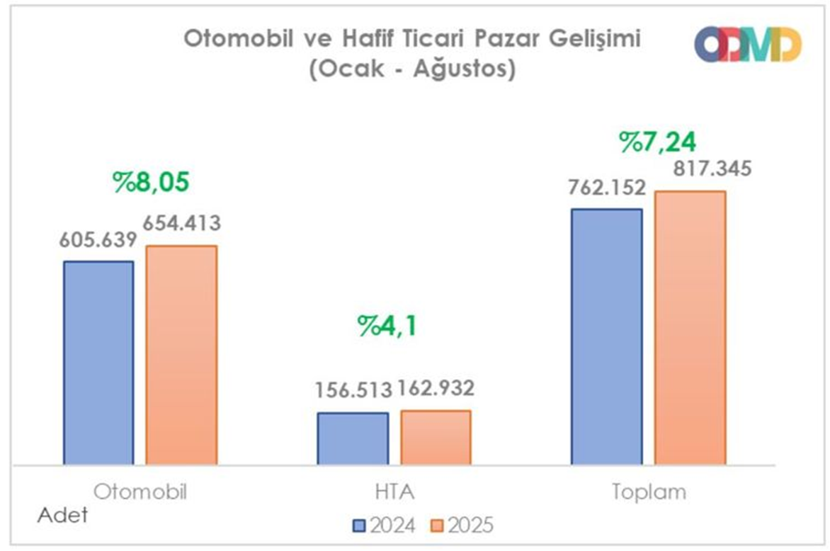 Otomotiv Distribütörleri ve Mobilite Derneği (ODMD) verilerine göre, otomobil ve hafif ticari araç satışları, ocak-ağustos döneminde geçen yılın aynı dönemine göre yüzde 7 oranında artarak 817 bin adedi aştı. Böylece, toplam satışlar yılın ilk 8 aylık döneminde tüm zamanların rekorunu kırdı. Geçtiğimiz Temmuz ayının sonunda Özel Tüketim Vergisi (ÖTV) oranlarında yapılan yeni düzenlemenin satışlardaki etkisi ortaya çıktı. Otomobil ve hafif ticari araç satışları, ocak-ağustos döneminde geçen yılın aynı dönemine göre yüzde 7.24 artarak 817 bin 345 adet oldu. Böylelikle toplam satışlar yılın ilk 8 aylık döneminde tüm zamanların rekorunu kırdı. Otomotiv Distribütörleri ve Mobilite Derneği'nin (ODMD) verilerine göre, yılın ilk 8 ayında otomobil satışları geçen yılın aynı dönemine göre yüzde 8 artarak 654 bin 413 adet, hafif ticari araç satışları ise yüzde 4.1 artarak 162 bin 932 adet olarak gerçekleşti. Kaynak: ODMD Tüm zamanların en yüksek ağustos satışı Ağustos ayında ise otomobil ve hafif ticari araç pazarı geçen senenin aynı ayına göre yüzde 12.8 oranında artarak 101 bin 650 adet olarak kayıtlara geçti. Aynı dönemde otomobil satışları da yüzde 18.7 artarak 82 bin 215 adet oldu. Hafif ticari araç pazarı da yüzde 6.77 oranında küçülerek 19 bin 435 adet olarak kayıtlara geçti. Bu sonuçlar ise hem yılın 8 aylık döneminde hem de Ağustos ayında tüm zamanların en yüksek satış adetlerinin elde edildiğini gösterdi. Kaynak: ODMD Temmuz ayındaki ÖTV değişikliği sonrası, birçok yerli modelin fiyatını düşerken, özellikle elektrikli modeller ile üst segmentlerdeki ithal araçlarda ise fiyat artışları gerçekleşmişti. Elektriklilerin payı yüzde 20'ye çıktı Ocak-Temmuz döneminde otomobil pazarı motor tipine göre analiz edildiğinde, elektrikli otomobillerin yükselişi dikkat çekiyor. Buna göre, - Benzinli otomobil satışları 304 bin 618 adet ile yüzde 46.5 pay, - Hibrit otomobil satışları 172 bin 366 adet ile yüzde 26.3 pay, - Elektrikli otomobil satışları 120 bin 857 adet ile yüzde 18.5 pay, - Dizel otomobil satışları 52 bin 253 adet ile yüzde 8 pay, - Otogazlı otomobil satışları 4 bin 319 adetle yüzde 0.7 pay aldı. [news_id:783437]